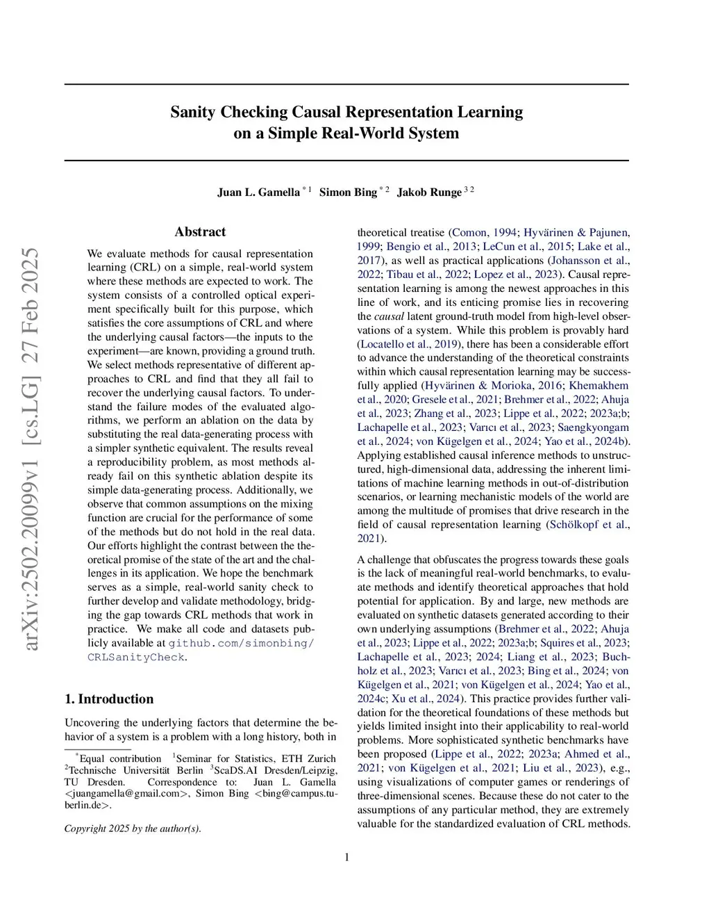 Sanity Checking Causal Representation Learning on a Simple Real-World System