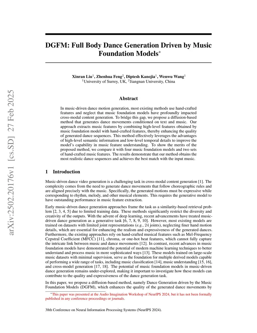 DGFM: Full Body Dance Generation Driven by Music Foundation Models