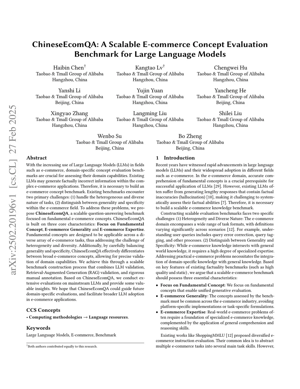With the increasing use of Large Language Models (LLMs) in fields such as e-commerce, domain-specific concept evaluation benchmarks are crucial for assessing their domain capabilities. Existing LLMs may generate factually incorrect information within the complex e-commerce applications. Therefore, it is necessary to build an e-commerce concept benchmark. Existing benchmarks encounter two primary challenges: (1) handle the heterogeneous and diverse nature of tasks, (2) distinguish between generality and specificity within the e-commerce field. To address these problems, we propose \textbf{ChineseEcomQA}, a scalable question-answering benchmark focused on fundamental e-commerce concepts. ChineseEcomQA is built on three core characteristics: \textbf{Focus on Fundamental Concept}, \textbf{E-commerce Generality} and \textbf{E-commerce Expertise}. Fundamental concepts are designed to be applicable across a diverse array of e-commerce tasks, thus addressing the challenge of heterogeneity and diversity. Additionally, by carefully balancing generality and specificity, ChineseEcomQA effectively differentiates between broad e-commerce concepts, allowing for precise validation of domain capabilities. We achieve this through a scalable benchmark construction process that combines LLM validation, Retrieval-Augmented Generation (RAG) validation, and rigorous manual annotation. Based on ChineseEcomQA, we conduct extensive evaluations on mainstream LLMs and provide some valuable insights. We hope that ChineseEcomQA could guide future domain-specific evaluations, and facilitate broader LLM adoption in e-commerce applications.