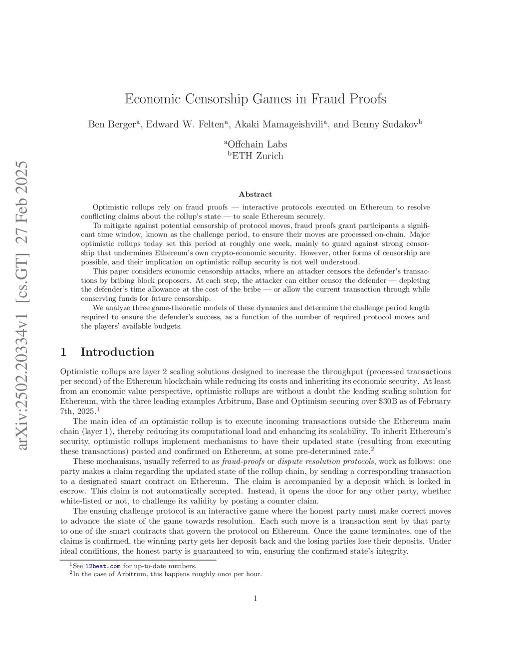 Optimistic rollups rely on fraud proofs -- interactive protocols executed on Ethereum to resolve conflicting claims about the rollup's state -- to scale Ethereum securely.To mitigate against potential censorship of protocol moves, fraud proofs grant participants a significant time window, known as the challenge period, to ensure their moves are processed on chain. Major optimistic rollups today set this period at roughly one week, mainly to guard against strong censorship that undermines Ethereum's own crypto-economic security. However, other forms of censorship are possible, and their implication on optimistic rollup security is not well understood.This paper considers economic censorship attacks, where an attacker censors the defender's transactions by bribing block proposers. At each step, the attacker can either censor the defender -- depleting the defender's time allowance at the cost of the bribe -- or allow the current transaction through while conserving funds for future censorship.We analyze three game theoretic models of these dynamics and determine the challenge period length required to ensure the defender's success, as a function of the number of required protocol moves and the players' available budgets.