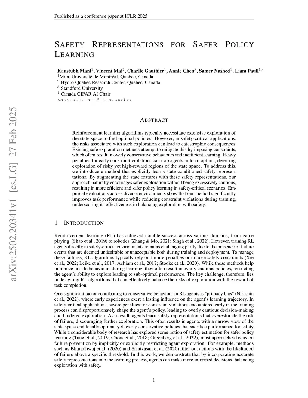 Reinforcement learning algorithms typically necessitate extensive exploration of the state space to find optimal policies. However, in safety-critical applications, the risks associated with such exploration can lead to catastrophic consequences. Existing safe exploration methods attempt to mitigate this by imposing constraints, which often result in overly conservative behaviours and inefficient learning. Heavy penalties for early constraint violations can trap agents in local optima, deterring exploration of risky yet high-reward regions of the state space. To address this, we introduce a method that explicitly learns state-conditioned safety representations. By augmenting the state features with these safety representations, our approach naturally encourages safer exploration without being excessively cautious, resulting in more efficient and safer policy learning in safety-critical scenarios. Empirical evaluations across diverse environments show that our method significantly improves task performance while reducing constraint violations during training, underscoring its effectiveness in balancing exploration with safety.