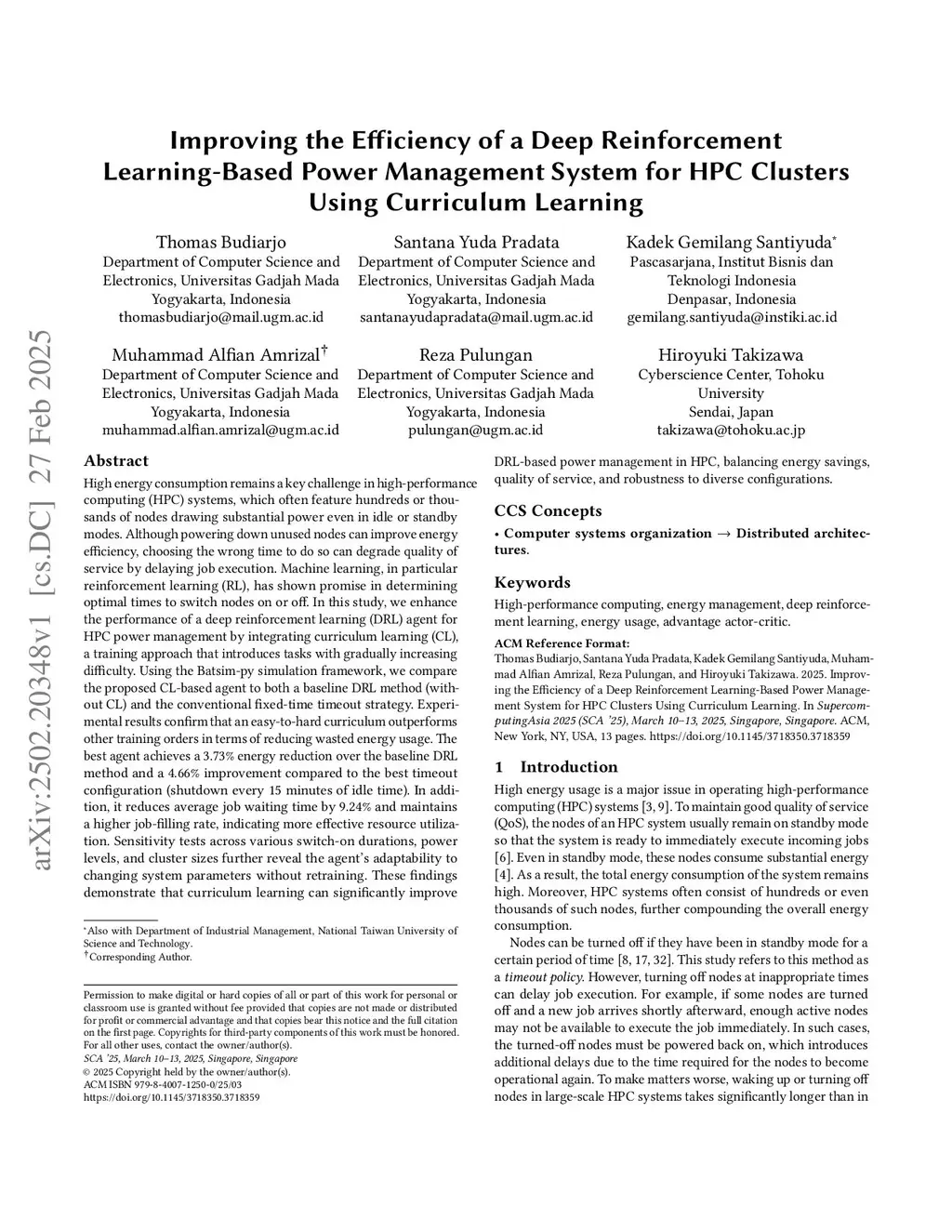 Improving the Efficiency of a Deep Reinforcement Learning-Based Power Management System for HPC Clusters Using Curriculum Learning