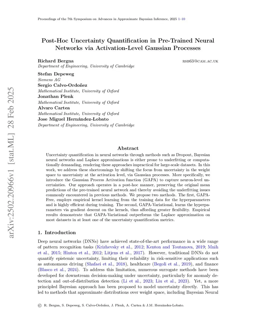 Uncertainty quantification in neural networks through methods such as Dropout, Bayesian neural networks and Laplace approximations is either prone to underfitting or computationally demanding, rendering these approaches impractical for large-scale datasets. In this work, we address these shortcomings by shifting the focus from uncertainty in the weight space to uncertainty at the activation level, via Gaussian processes. More specifically, we introduce the Gaussian Process Activation function (GAPA) to capture neuron-level uncertainties. Our approach operates in a post-hoc manner, preserving the original mean predictions of the pre-trained neural network and thereby avoiding the underfitting issues commonly encountered in previous methods. We propose two methods. The first, GAPA-Free, employs empirical kernel learning from the training data for the hyperparameters and is highly efficient during training. The second, GAPA-Variational, learns the hyperparameters via gradient descent on the kernels, thus affording greater flexibility. Empirical results demonstrate that GAPA-Variational outperforms the Laplace approximation on most datasets in at least one of the uncertainty quantification metrics.