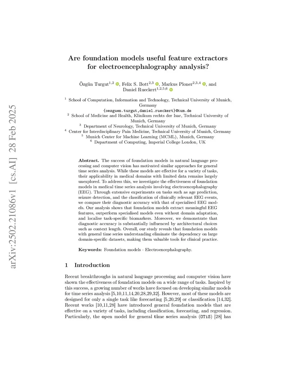 Are foundation models useful feature extractors for electroencephalography analysis?