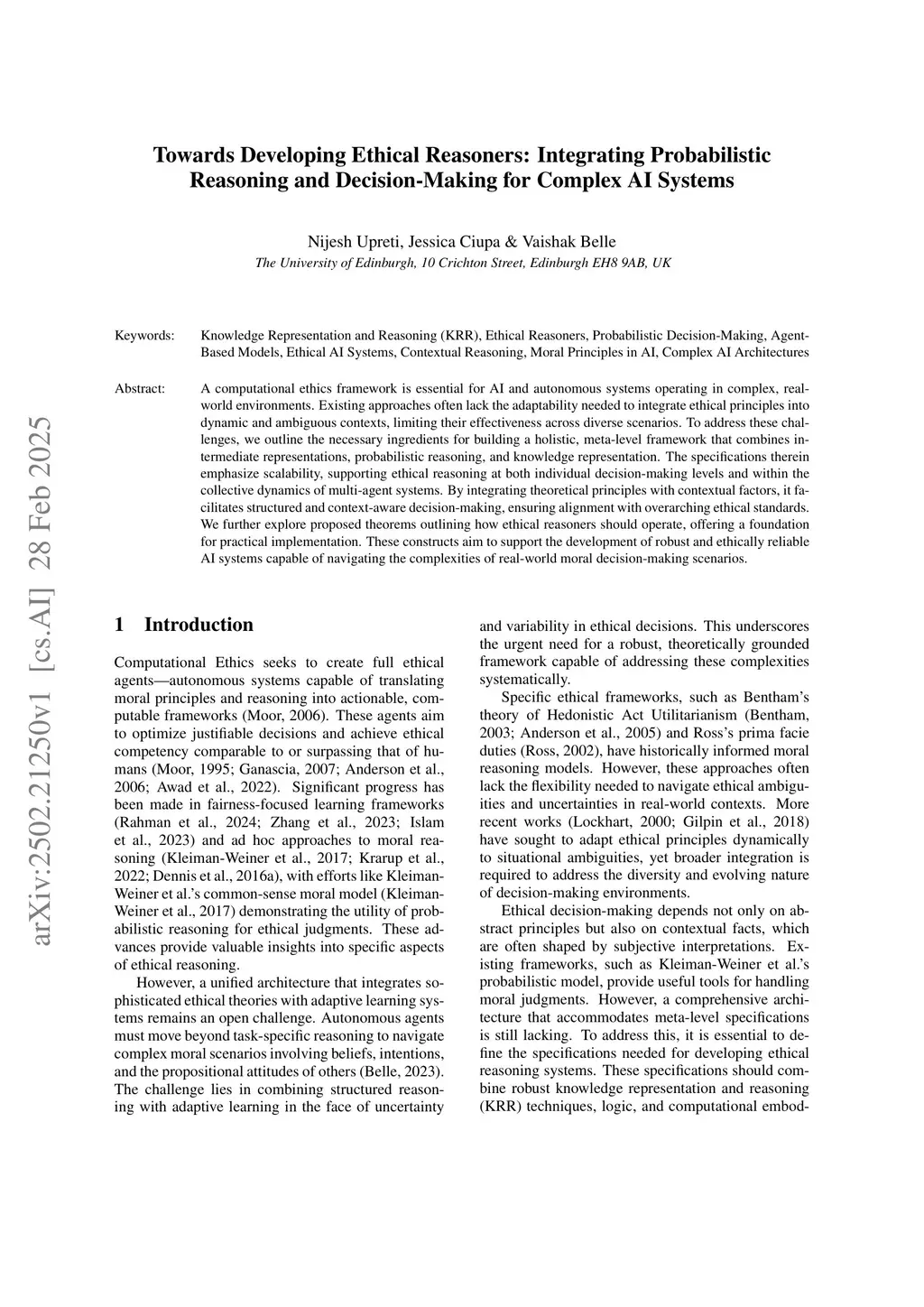Towards Developing Ethical Reasoners: Integrating Probabilistic Reasoning and Decision-Making for Complex AI Systems