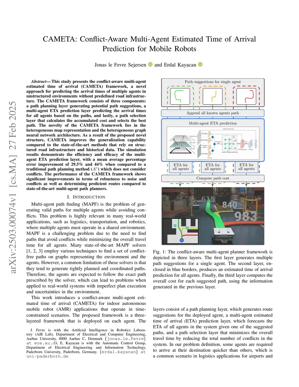 CAMETA: Conflict-Aware Multi-Agent Estimated Time of Arrival Prediction for Mobile Robots