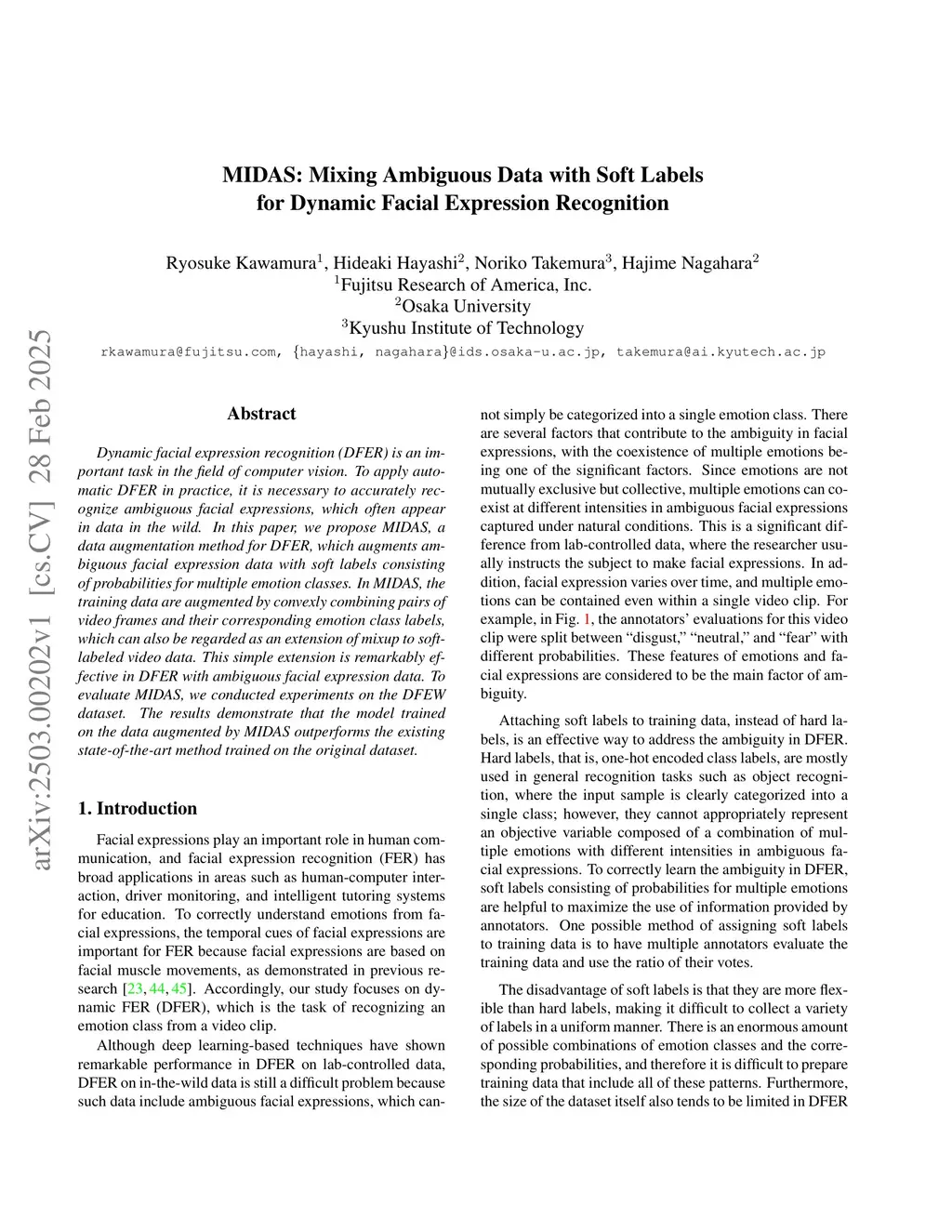 MIDAS: Mixing Ambiguous Data with Soft Labels for Dynamic Facial Expression Recognition