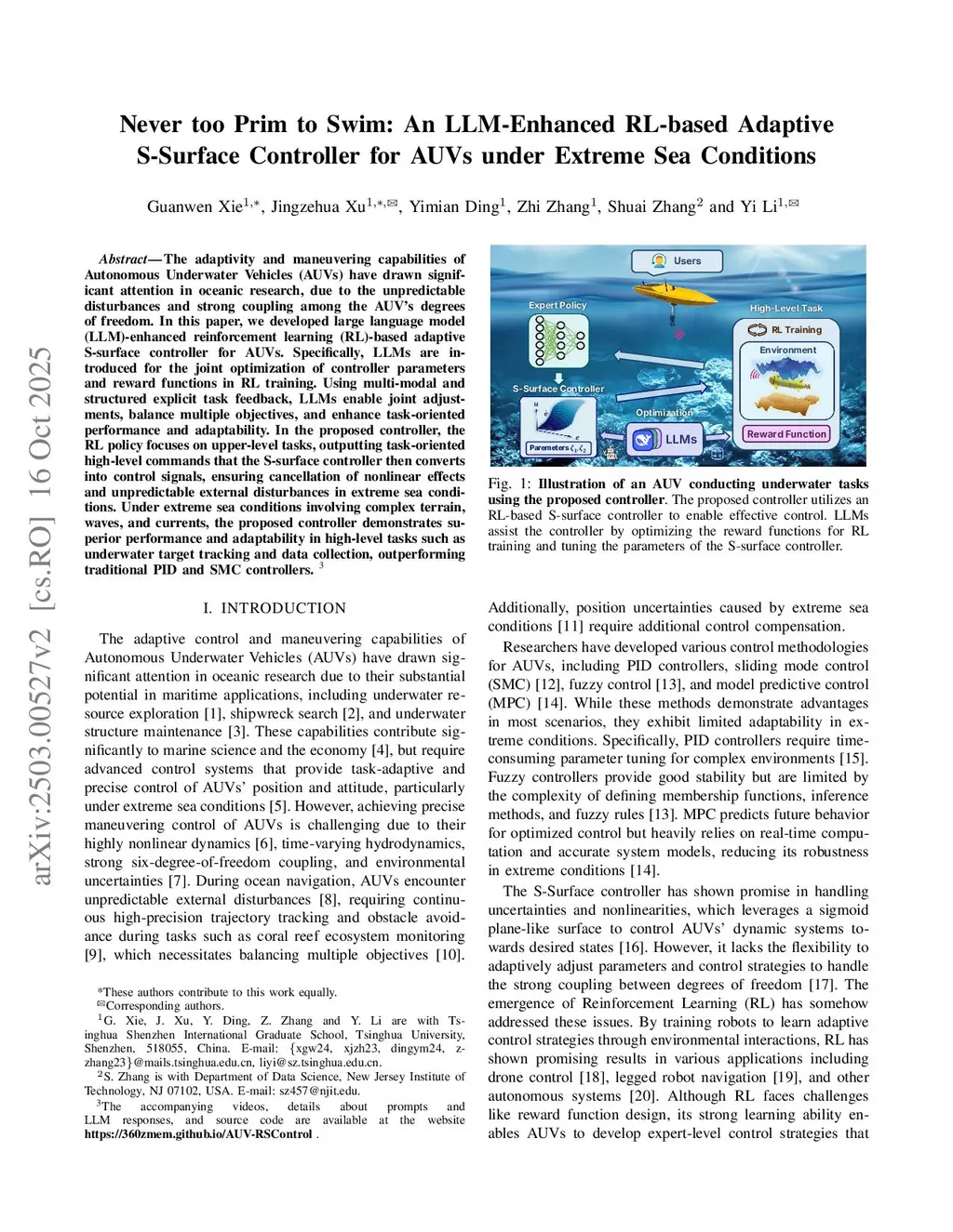 Never too Prim to Swim: An LLM-Enhanced RL-based Adaptive S-Surface Controller for AUVs under Extreme Sea Conditions