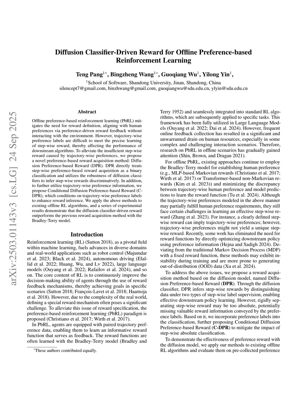 Diffusion Classifier-Driven Reward for Offline Preference-based Reinforcement Learning
