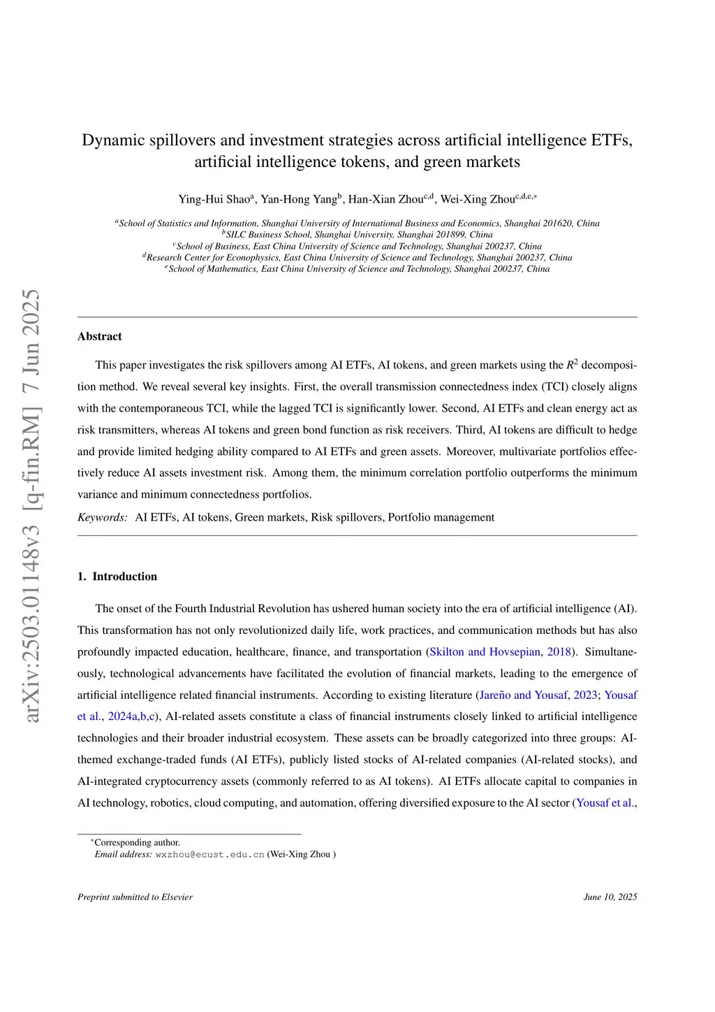 Dynamic spillovers and investment strategies across artificial intelligence ETFs, artificial intelligence tokens, and green markets