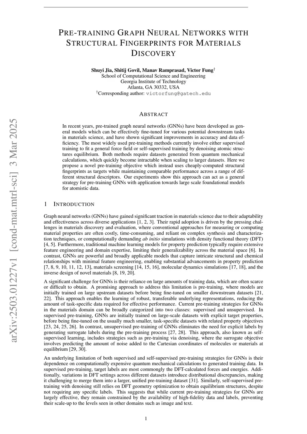 Pre-training Graph Neural Networks with Structural Fingerprints for Materials Discovery