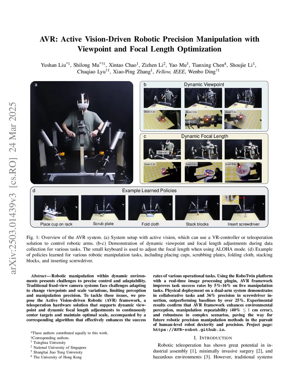 AVR: Active Vision-Driven Precise Robot Manipulation with Viewpoint and Focal Length Optimization