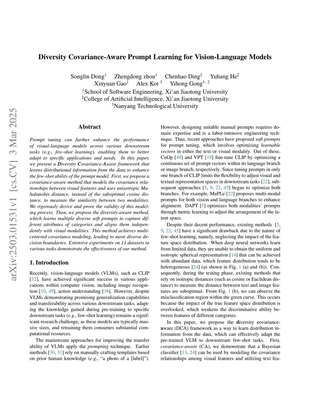 Diversity Covariance-Aware Prompt Learning for Vision-Language Models
