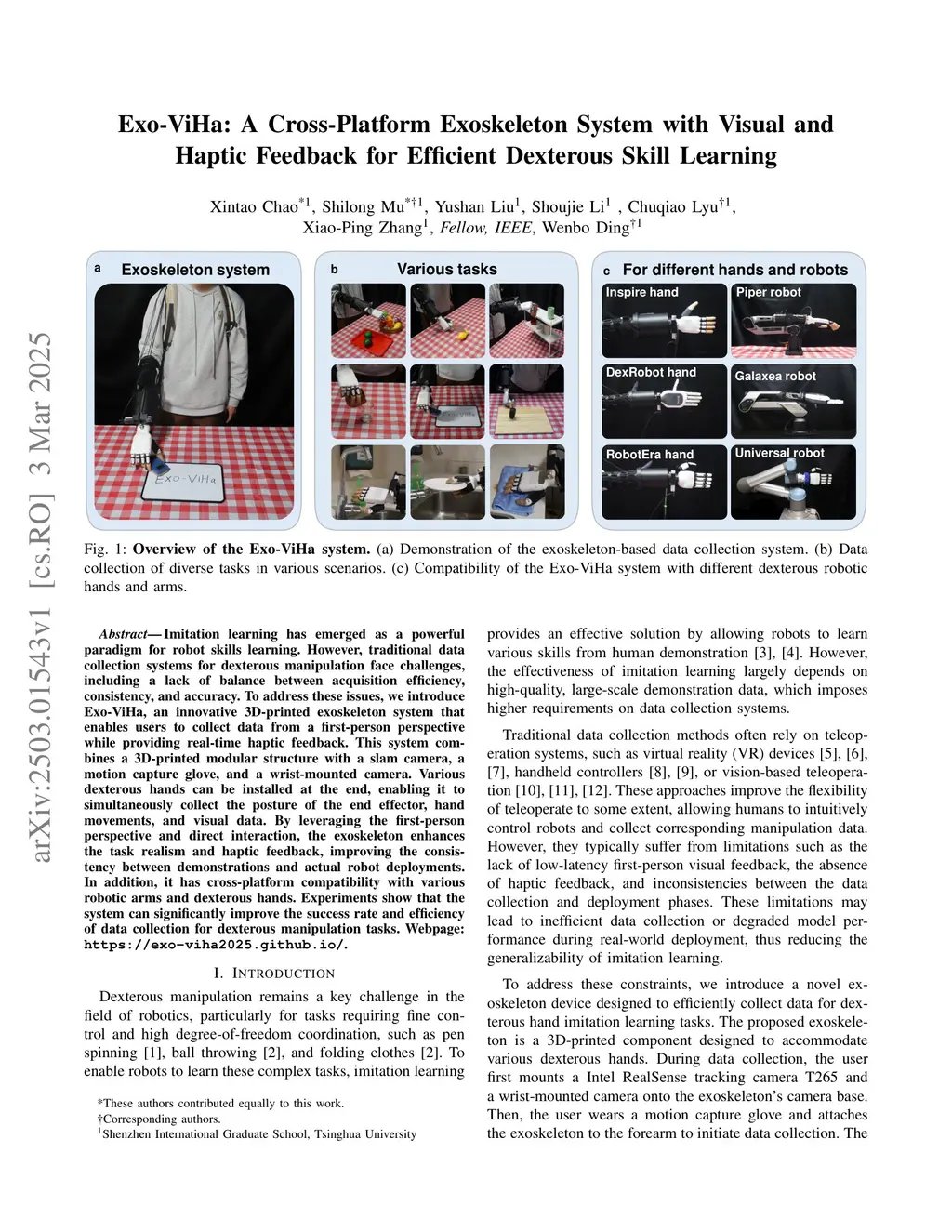 Exo-ViHa: A Cross-Platform Exoskeleton System with Visual and Haptic Feedback for Efficient Dexterous Skill Learning