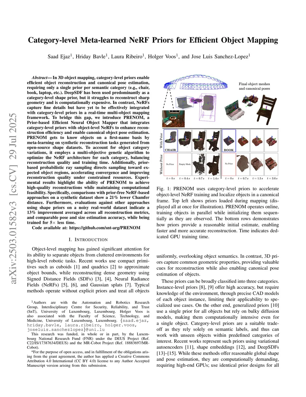 In 3D object mapping, category-level priors enable efficient object reconstruction and canonical pose estimation, requiring only a single prior per semantic category (e.g., chair, book, laptop, etc.). DeepSDF has been used predominantly as a category-level shape prior, but it struggles to reconstruct sharp geometry and is computationally expensive. In contrast, NeRFs capture fine details but have yet to be effectively integrated with category-level priors in a real-time multi-object mapping framework. To bridge this gap, we introduce PRENOM, a Prior-based Efficient Neural Object Mapper that integrates category-level priors with object-level NeRFs to enhance reconstruction efficiency and enable canonical object pose estimation. PRENOM gets to know objects on a first-name basis by meta-learning on synthetic reconstruction tasks generated from open-source shape datasets. To account for object category variations, it employs a multi-objective genetic algorithm to optimize the NeRF architecture for each category, balancing reconstruction quality and training time. Additionally, prior-based probabilistic ray sampling directs sampling toward expected object regions, accelerating convergence and improving reconstruction quality under constrained resources. Experimental results highlight the ability of PRENOM to achieve high-quality reconstructions while maintaining computational feasibility. Specifically, comparisons with prior-free NeRF-based approaches on a synthetic dataset show a 21\% lower Chamfer distance. Furthermore, evaluations against other approaches using shape priors on a noisy real-world dataset indicate a 13\% improvement averaged across all reconstruction metrics, and comparable pose and size estimation accuracy, while being trained for 5 less time. Code available at:this https URL
