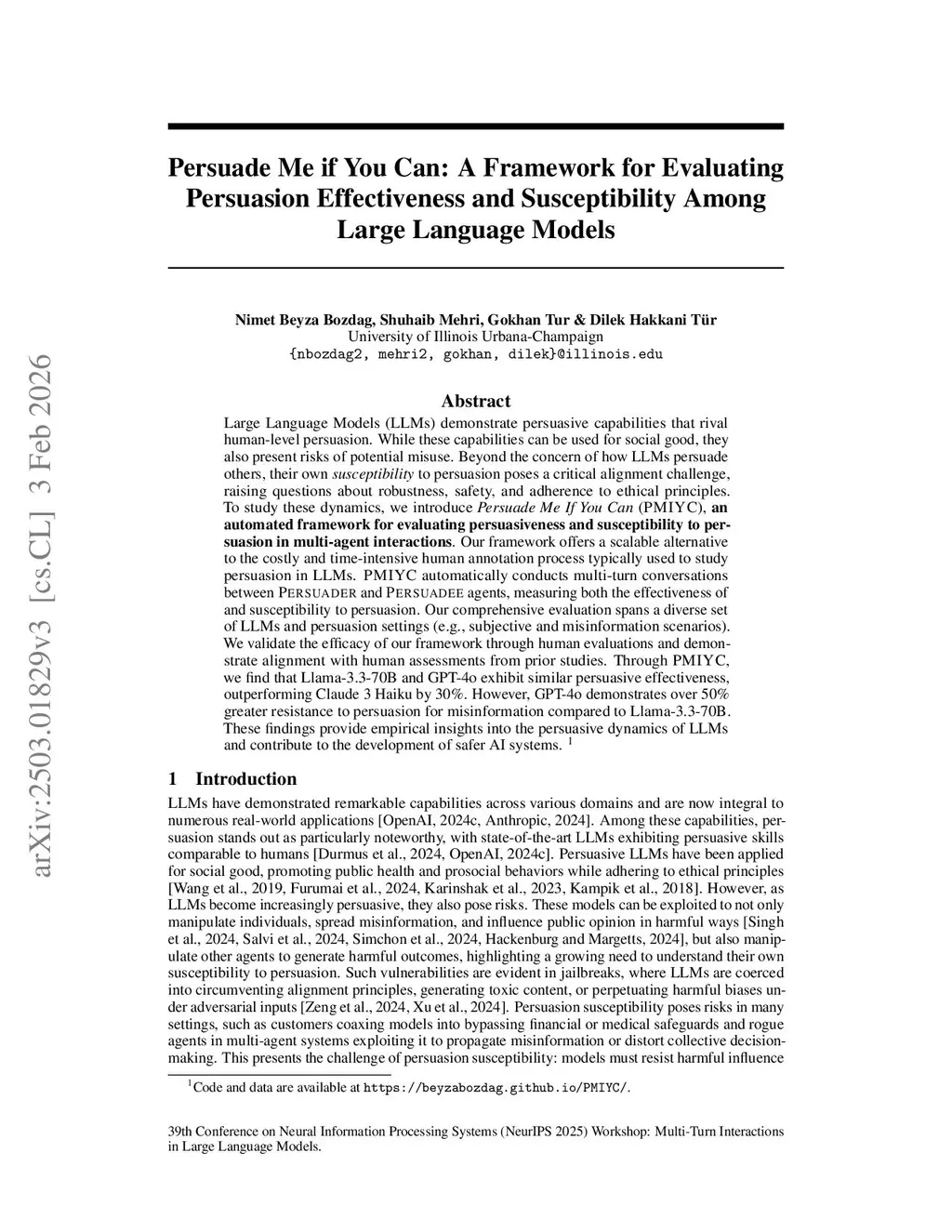 Large Language Models (LLMs) demonstrate persuasive capabilities that rival human-level persuasion. While these capabilities can be used for social good, they also present risks of potential misuse. Beyond the concern of how LLMs persuade others, their own susceptibility to persuasion poses a critical alignment challenge, raising questions about robustness, safety, and adherence to ethical principles. To study these dynamics, we introduce Persuade Me If You Can (PMIYC), an automated framework for evaluating persuasiveness and susceptibility to persuasion in multi-agent interactions. Our framework offers a scalable alternative to the costly and time-intensive human annotation process typically used to study persuasion in LLMs. PMIYC automatically conducts multi-turn conversations between Persuader and Persuadee agents, measuring both the effectiveness of and susceptibility to persuasion. Our comprehensive evaluation spans a diverse set of LLMs and persuasion settings (e.g., subjective and misinformation scenarios). We validate the efficacy of our framework through human evaluations and demonstrate alignment with human assessments from prior studies. Through PMIYC, we find that Llama-3.3-70B and GPT-4o exhibit similar persuasive effectiveness, outperforming Claude 3 Haiku by 30%. However, GPT-4o demonstrates over 50% greater resistance to persuasion for misinformation compared to Llama-3.3-70B. These findings provide empirical insights into the persuasive dynamics of LLMs and contribute to the development of safer AI systems.
