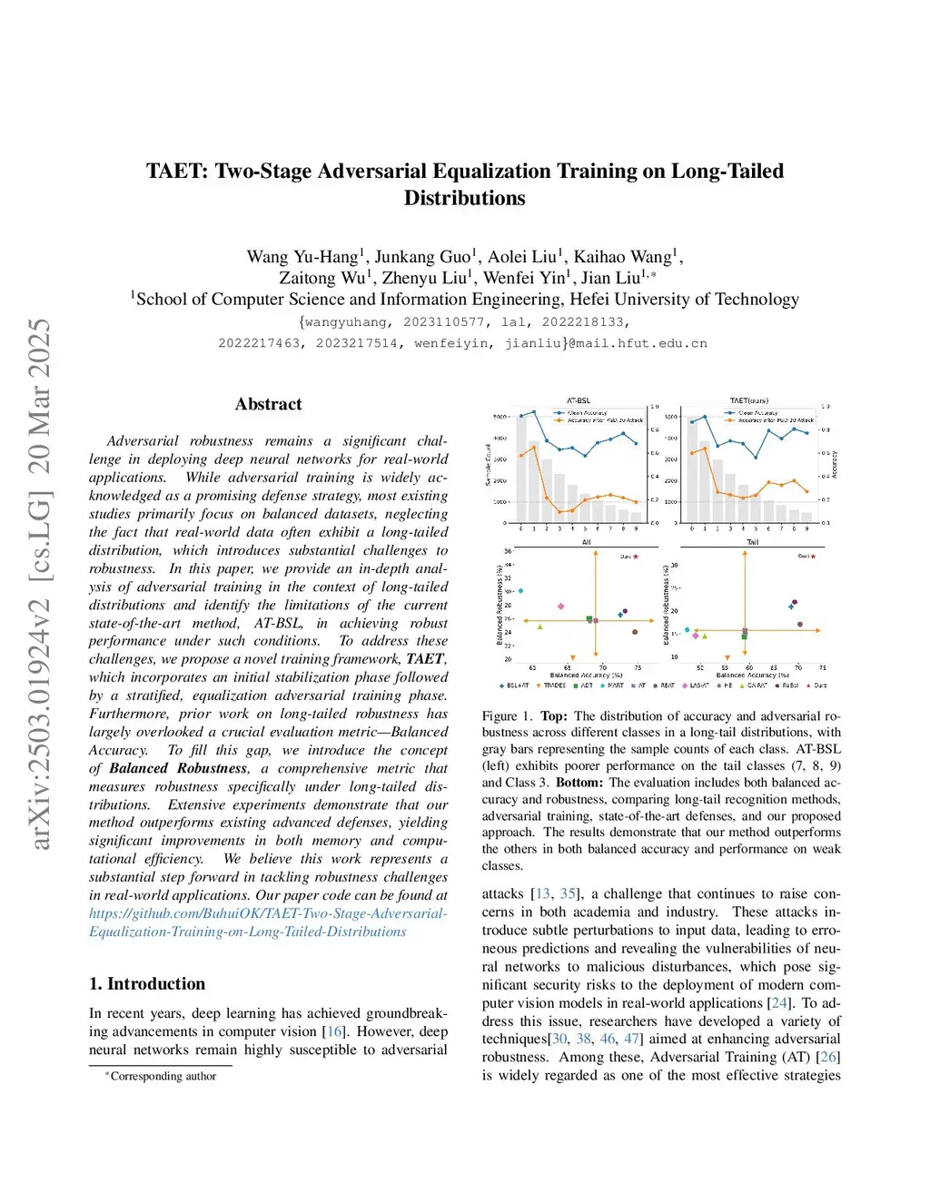 TAET: Two-Stage Adversarial Equalization Training on Long-Tailed Distributions