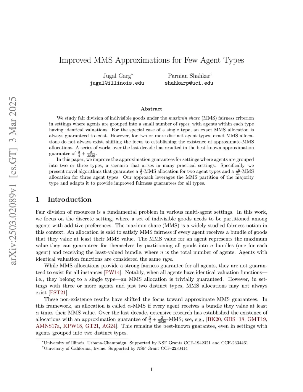 We study fair division of indivisible goods under the maximin share (MMS) fairness criterion in settings where agents are grouped into a small number of types, with agents within each type having identical valuations. For the special case of a single type, an exact MMS allocation is always guaranteed to exist. However, for two or more distinct agent types, exact MMS allocations do not always exist, shifting the focus to establishing the existence of approximate-MMS allocations. A series of works over the last decade has resulted in the best-known approximation guarantee of .In this paper, we improve the approximation guarantees for settings where agents are grouped into two or three types, a scenario that arises in many practical settings. Specifically, we present novel algorithms that guarantee a -MMS allocation for two agent types and a -MMS allocation for three agent types. Our approach leverages the MMS partition of the majority type and adapts it to provide improved fairness guarantees for all types.