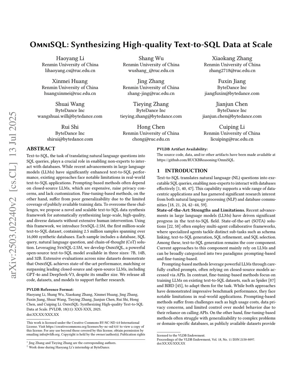 OmniSQL: Synthesizing High-quality Text-to-SQL Data at Scale