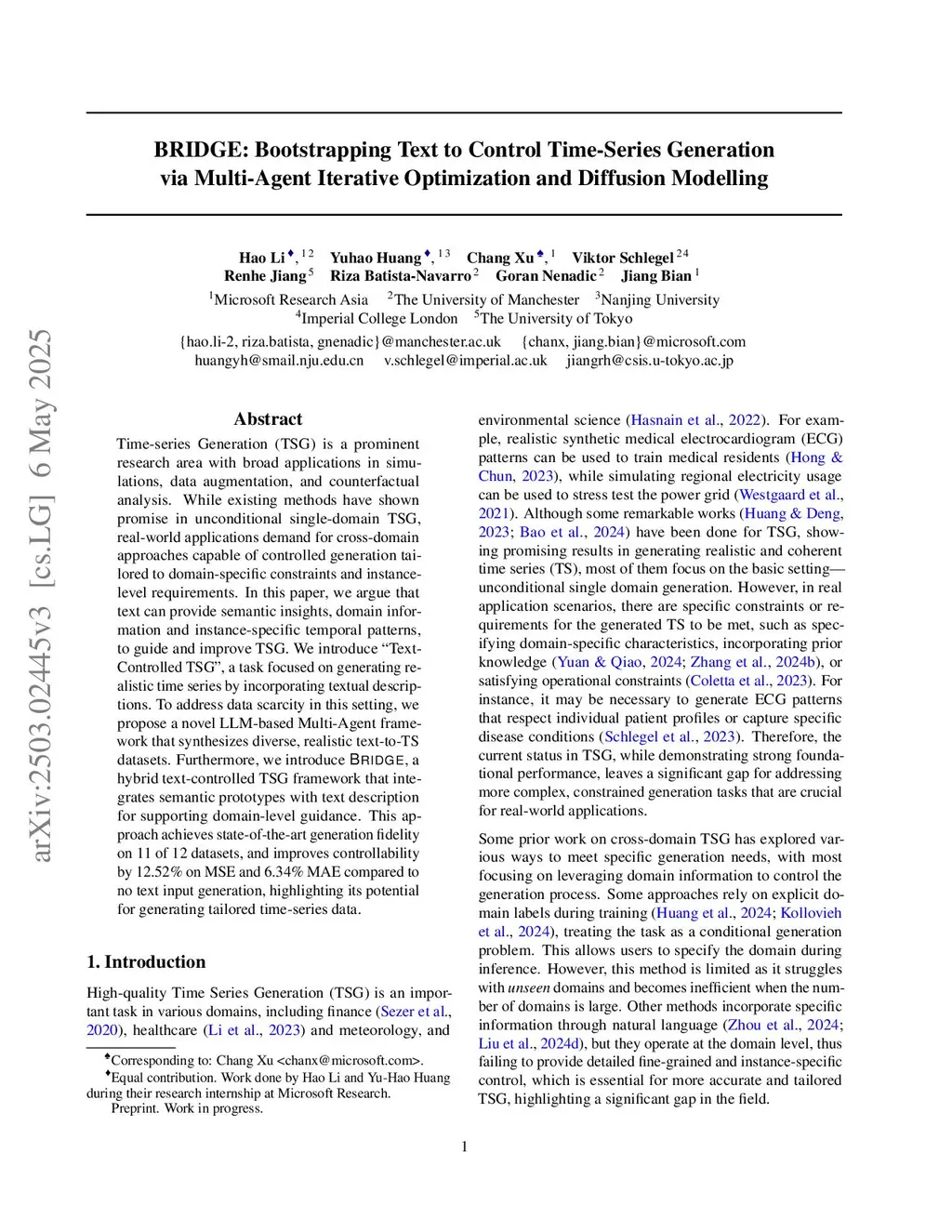 BRIDGE: Bootstrapping Text to Control Time-Series Generation via Multi-Agent Iterative Optimization and Diffusion Modeling