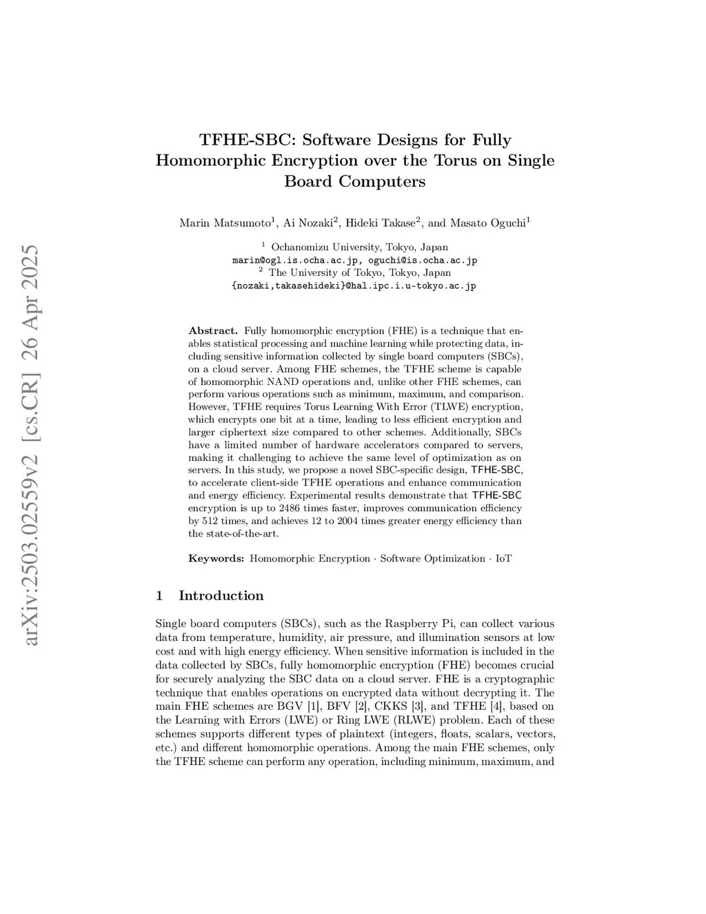 Fully homomorphic encryption (FHE) is a technique that enables statistical processing and machine learning while protecting data, including sensitive information collected by single board computers (SBCs), on a cloud server. Among FHE schemes, the TFHE scheme is capable of homomorphic NAND operations and, unlike other FHE schemes, can perform various operations such as minimum, maximum, and comparison. However, TFHE requires Torus Learning With Error (TLWE) encryption, which encrypts one bit at a time, leading to less efficient encryption and larger ciphertext size compared to other schemes. Additionally, SBCs have a limited number of hardware accelerators compared to servers, making it challenging to achieve the same level of optimization as on servers. In this study, we propose a novel SBC-specific design, \textsf{TFHE-SBC}, to accelerate client-side TFHE operations and enhance communication and energy efficiency. Experimental results demonstrate that \textsf{TFHE-SBC} encryption is up to 2486 times faster, improves communication efficiency by 512 times, and achieves 12 to 2004 times greater energy efficiency than the state-of-the-art.