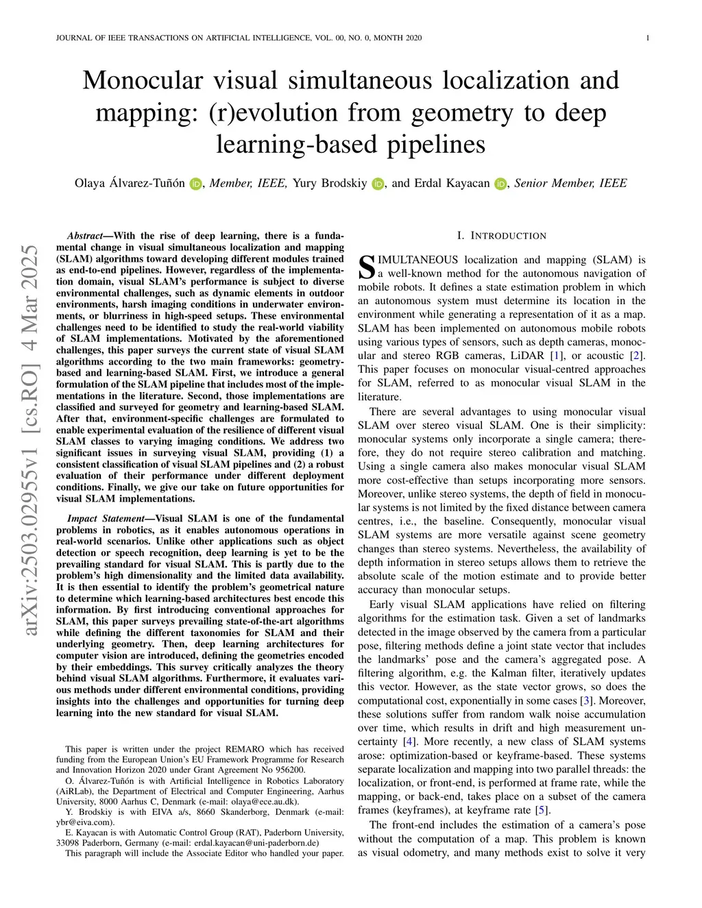 Monocular visual simultaneous localization and mapping: (r)evolution from geometry to deep learning-based pipelines