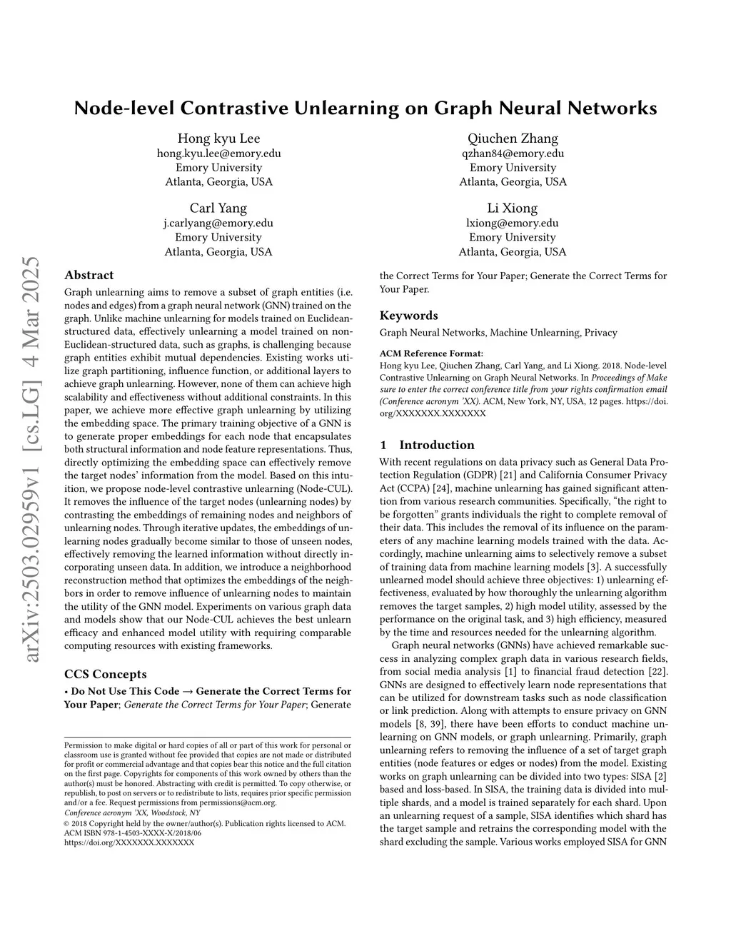 Node-level Contrastive Unlearning on Graph Neural Networks