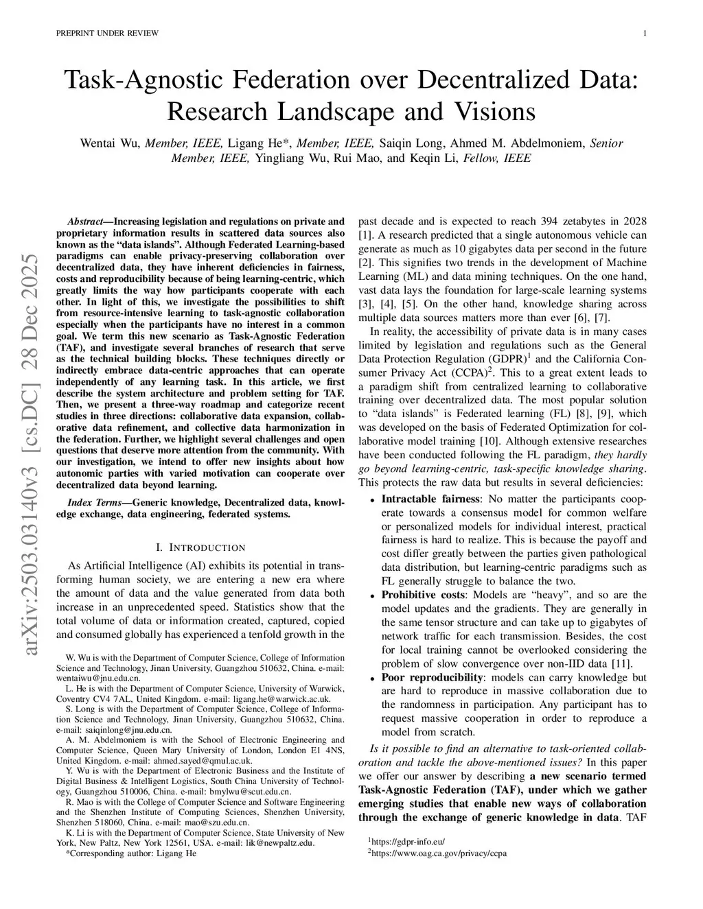 Task-Agnostic Federation over Decentralized Data: Research Landscape and Visions