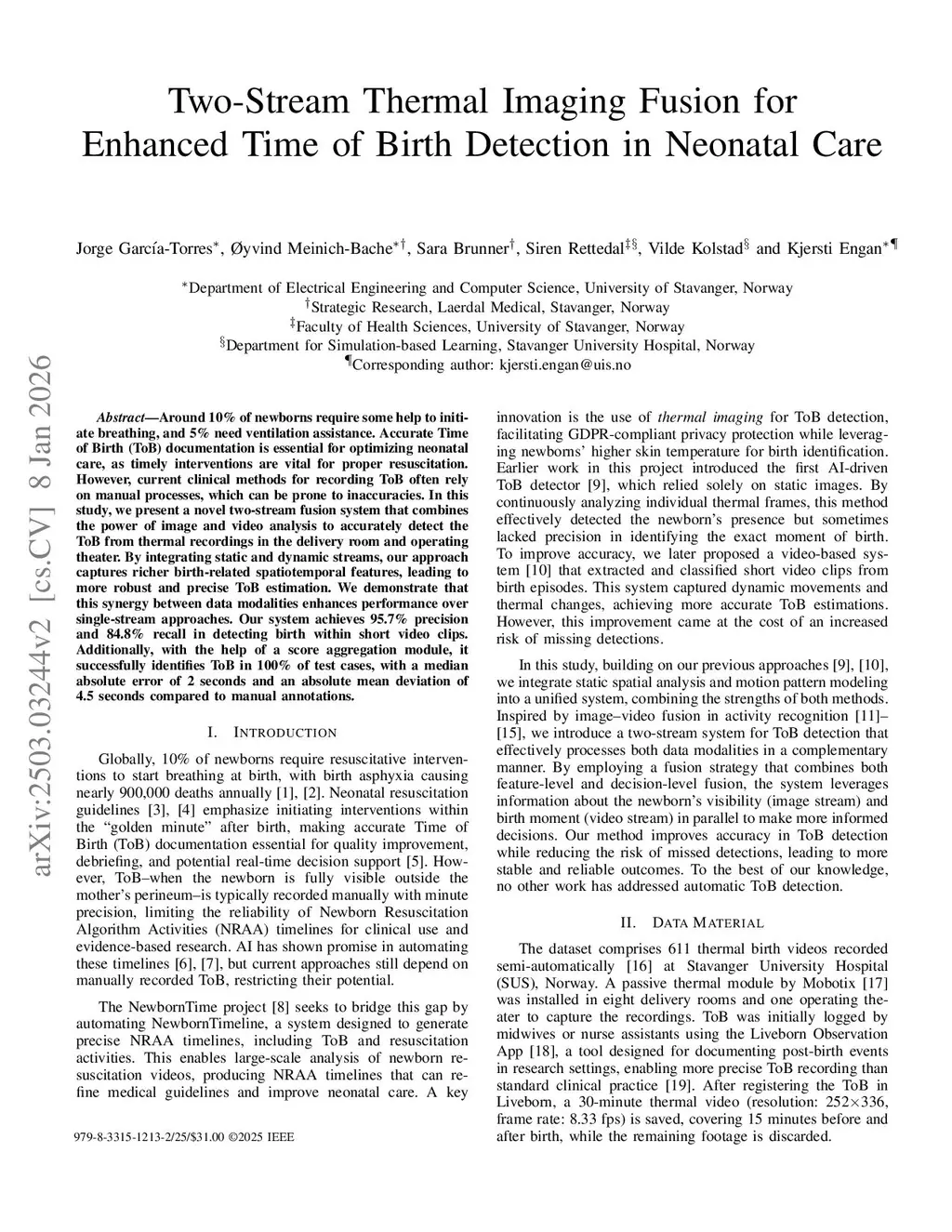 Two-Stream Thermal Imaging Fusion for Enhanced Time of Birth Detection in Neonatal Care