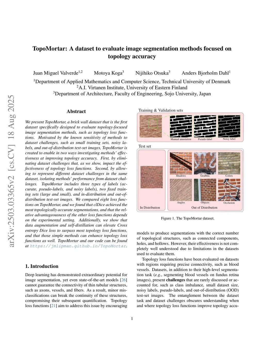 TopoMortar: A dataset to evaluate image segmentation methods focused on topology accuracy