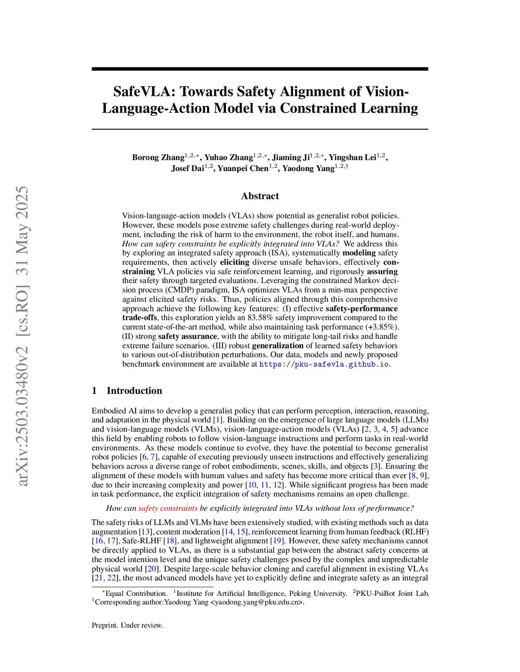 SafeVLA: Towards Safety Alignment of Vision-Language-Action Model via Constrained Learning