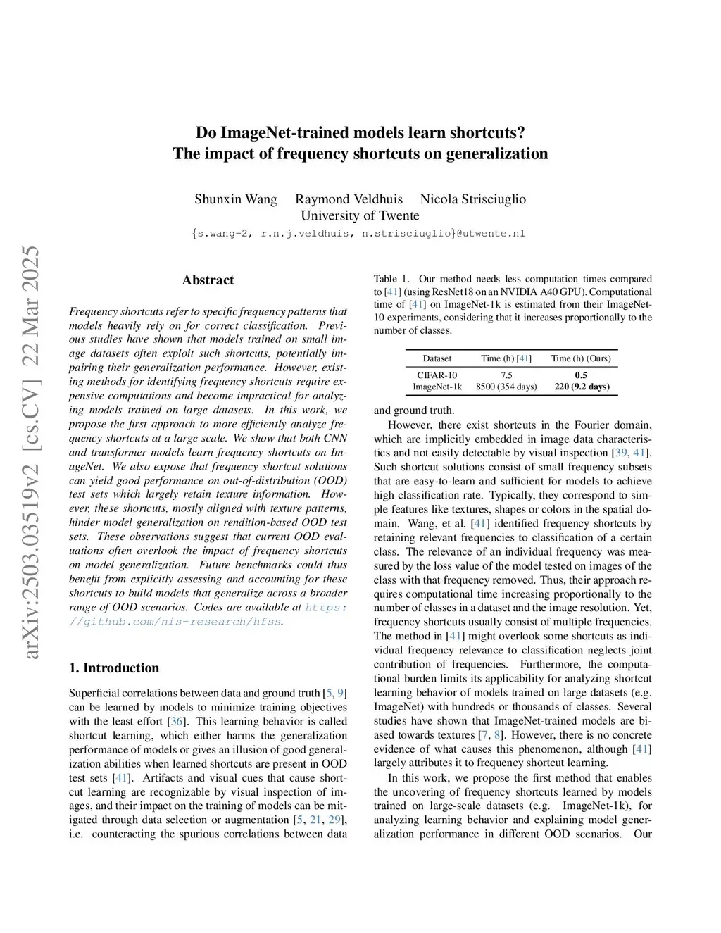 Do ImageNet-trained models learn shortcuts? The impact of frequency shortcuts on generalization
