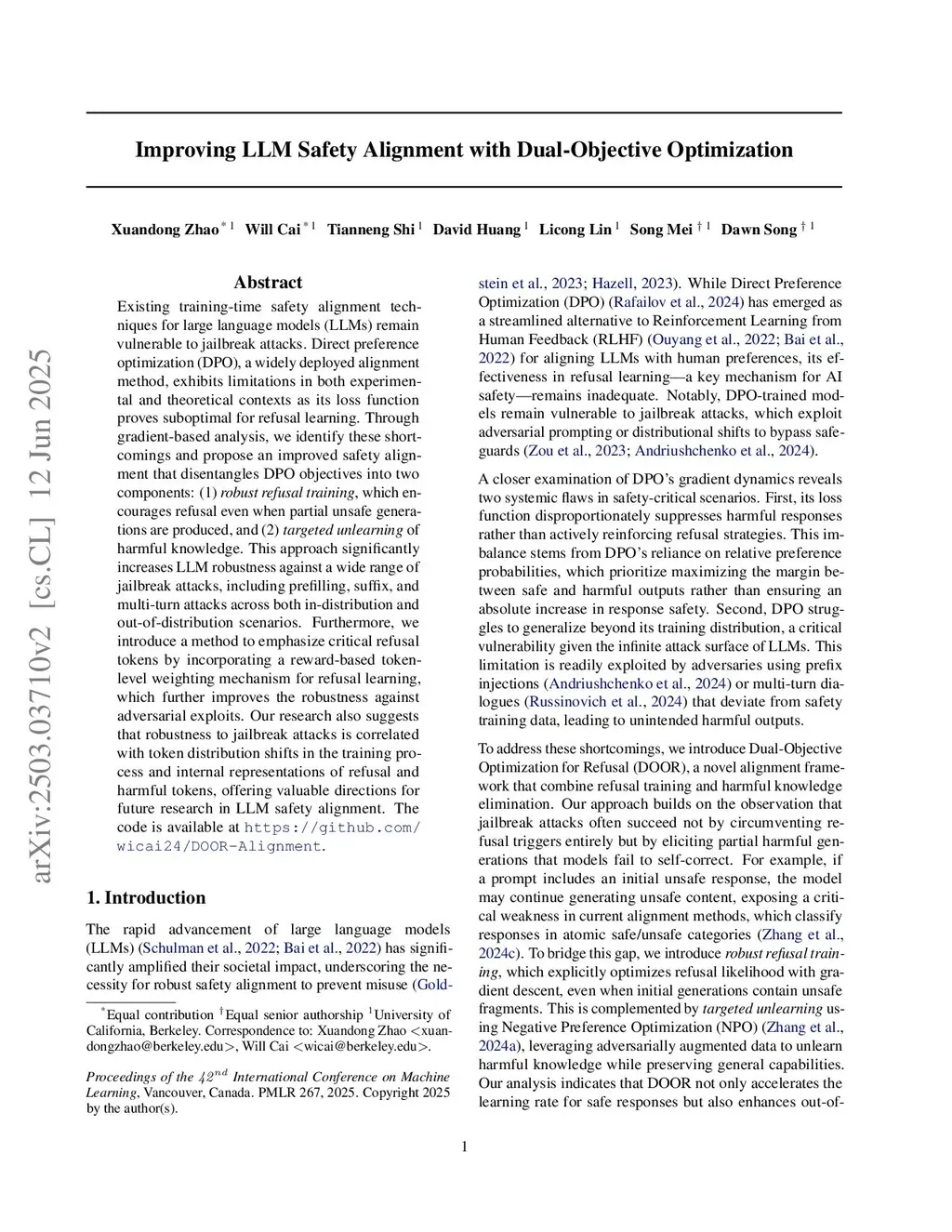 Improving LLM Safety Alignment with Dual-Objective Optimization