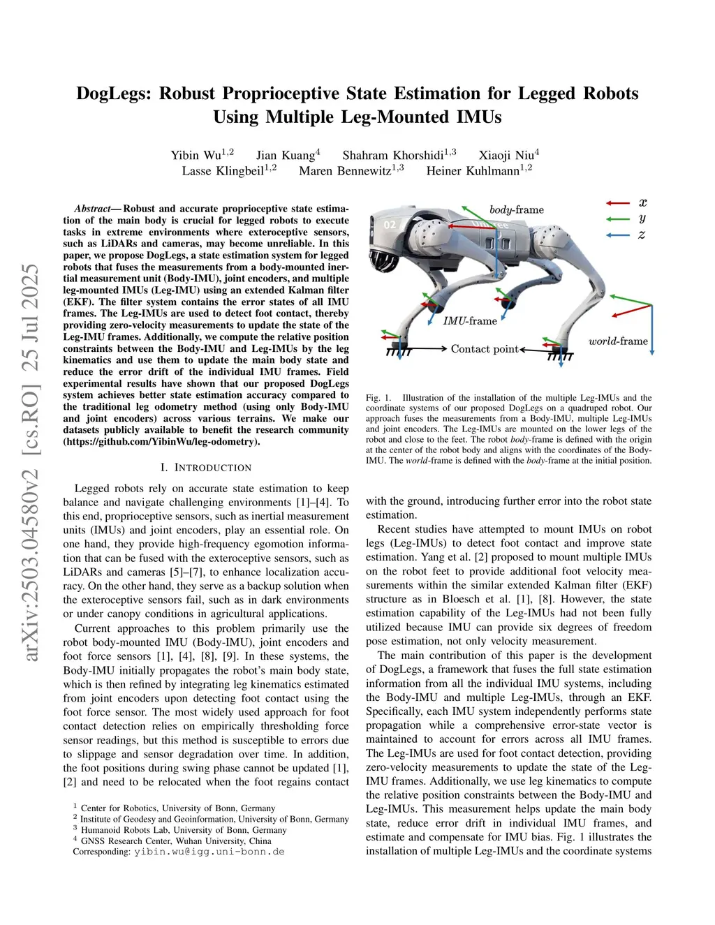 DogLegs: Robust Proprioceptive State Estimation for Legged Robots Using Multiple Leg-Mounted IMUs