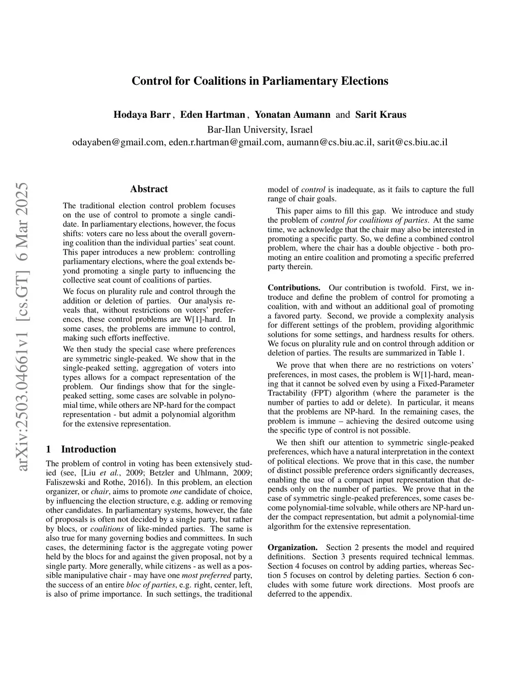 The traditional election control problem focuses on the use of control to promote a single candidate. In parliamentary elections, however, the focus shifts: voters care no less about the overall governing coalition than the individual parties' seat count. This paper introduces a new problem: controlling parliamentary elections, where the goal extends beyond promoting a single party to influencing the collective seat count of coalitions of parties.We focus on plurality rule and control through the addition or deletion of parties. Our analysis reveals that, without restrictions on voters' preferences, these control problems are W[1]-hard. In some cases, the problems are immune to control, making such efforts ineffective.We then study the special case where preferences are symmetric single-peaked. We show that in the single-peaked setting, aggregation of voters into types allows for a compact representation of the problem. Our findings show that for the single-peaked setting, some cases are solvable in polynomial time, while others are NP-hard for the compact representation - but admit a polynomial algorithm for the extensive representation.