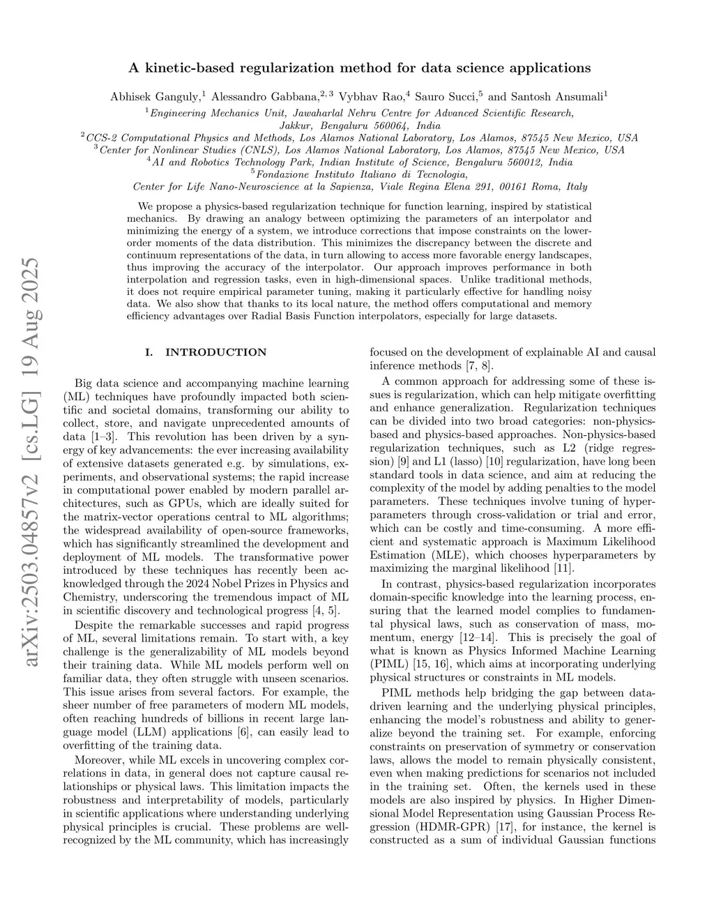 A kinetic-based regularization method for data science applications