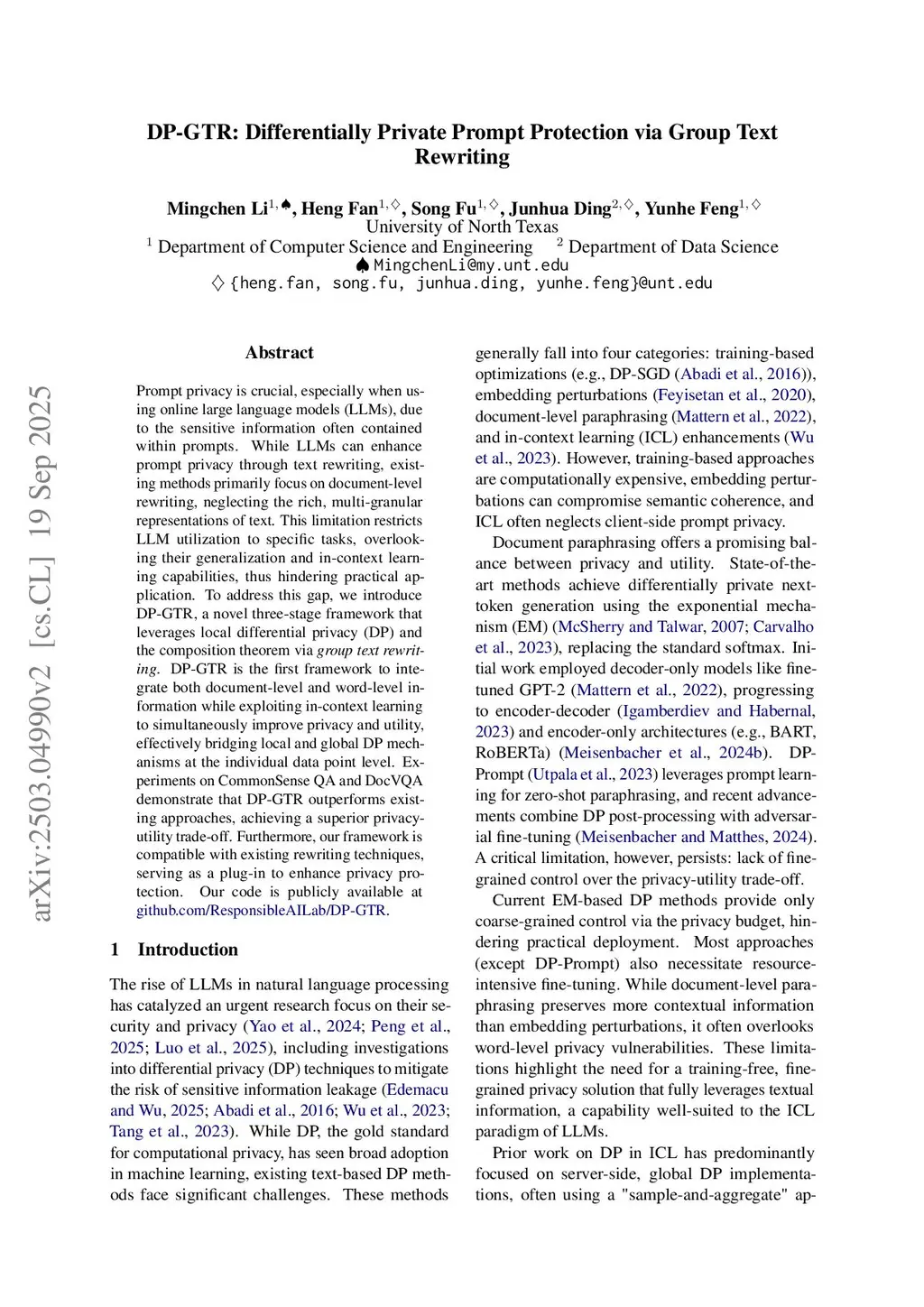 DP-GTR: Differentially Private Prompt Protection via Group Text Rewriting