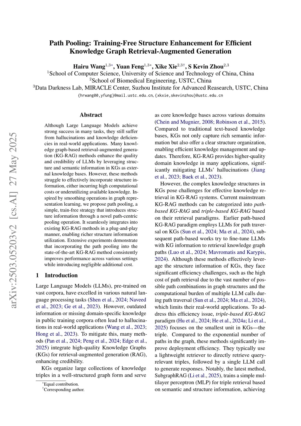 Although Large Language Models achieve strong success in many tasks, they still suffer from hallucinations and knowledge deficiencies in real-world applications. Many knowledge graph-based retrieval-augmented generation (KG-RAG) methods enhance the quality and credibility of LLMs by leveraging structure and semantic information in KGs as external knowledge bases. However, these methods struggle to effectively incorporate structure information, either incurring high computational costs or underutilizing available knowledge. Inspired by smoothing operations in graph representation learning, we propose path pooling, a simple, training-free strategy that introduces structure information through a novel path-centric pooling operation. It seamlessly integrates into existing KG-RAG methods in a plug-and-play manner, enabling richer structure information utilization. Extensive experiments demonstrate that incorporating the path pooling into the state-of-the-art KG-RAG method consistently improves performance across various settings while introducing negligible additional cost.