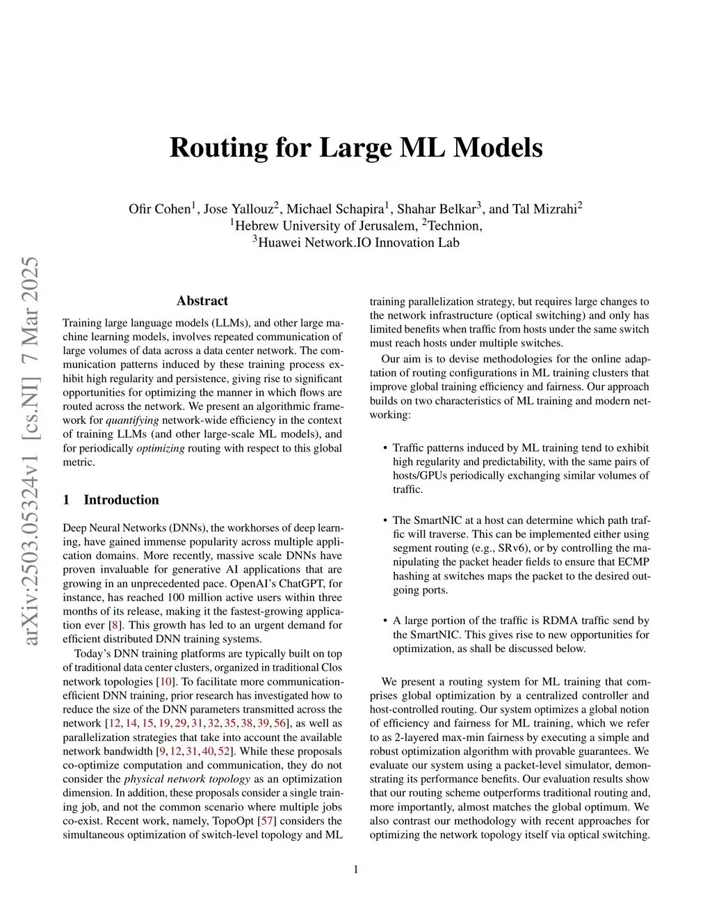 Training large language models (LLMs), and other large machine learning models, involves repeated communication of large volumes of data across a data center network. The communication patterns induced by these training process exhibit high regularity and persistence, giving rise to significant opportunities for optimizing the manner in which flows are routed across the network. We present an algorithmic framework for \textit{quantifying} network-wide efficiency in the context of training LLMs (and other large-scale ML models), and for periodically \textit{optimizing} routing with respect to this global metric.