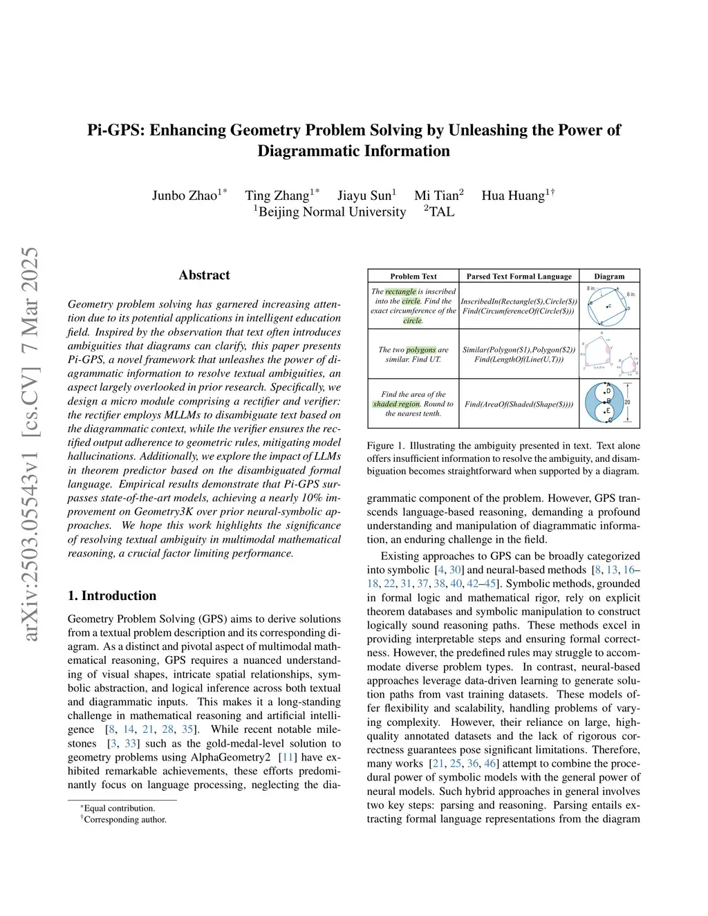 Geometry problem solving has garnered increasing attention due to its potential applications in intelligent education field. Inspired by the observation that text often introduces ambiguities that diagrams can clarify, this paper presents Pi-GPS, a novel framework that unleashes the power of diagrammatic information to resolve textual ambiguities, an aspect largely overlooked in prior research. Specifically, we design a micro module comprising a rectifier and verifier: the rectifier employs MLLMs to disambiguate text based on the diagrammatic context, while the verifier ensures the rectified output adherence to geometric rules, mitigating model hallucinations. Additionally, we explore the impact of LLMs in theorem predictor based on the disambiguated formal language. Empirical results demonstrate that Pi-GPS surpasses state-of-the-art models, achieving a nearly 10\% improvement on Geometry3K over prior neural-symbolic approaches. We hope this work highlights the significance of resolving textual ambiguity in multimodal mathematical reasoning, a crucial factor limiting performance.