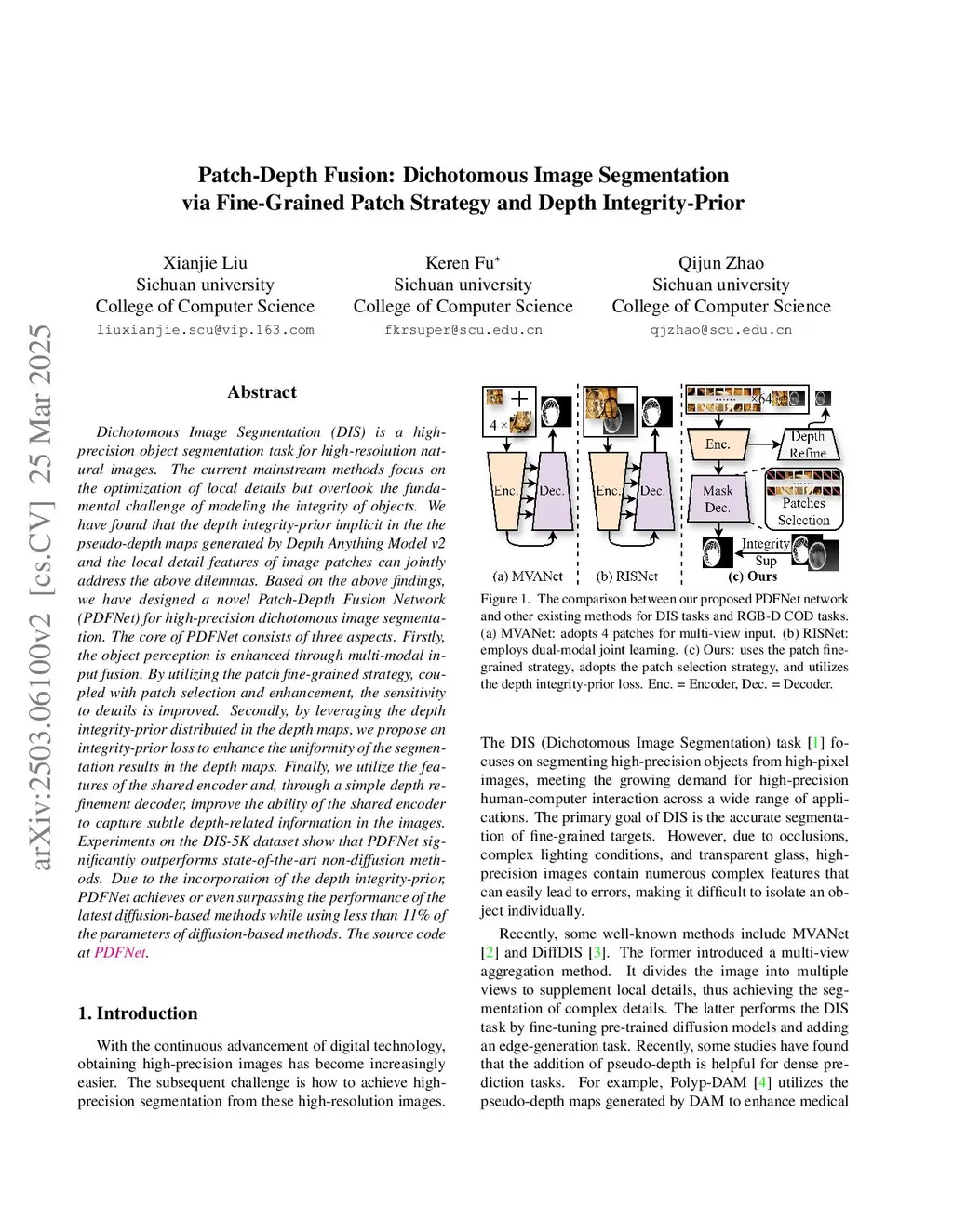 High-Precision Dichotomous Image Segmentation via Depth Integrity-Prior and Fine-Grained Patch Strategy