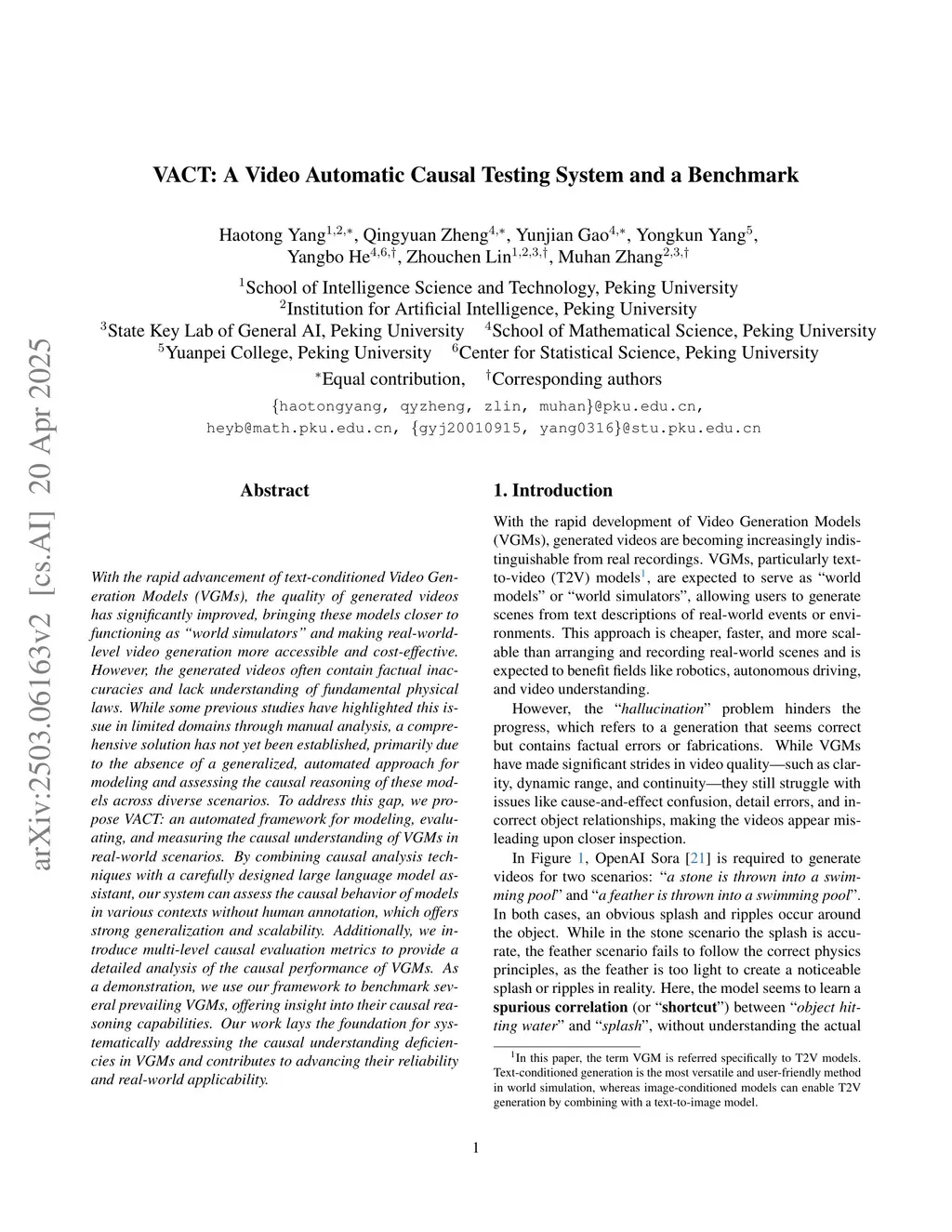 VACT: A Video Automatic Causal Testing System and a Benchmark
