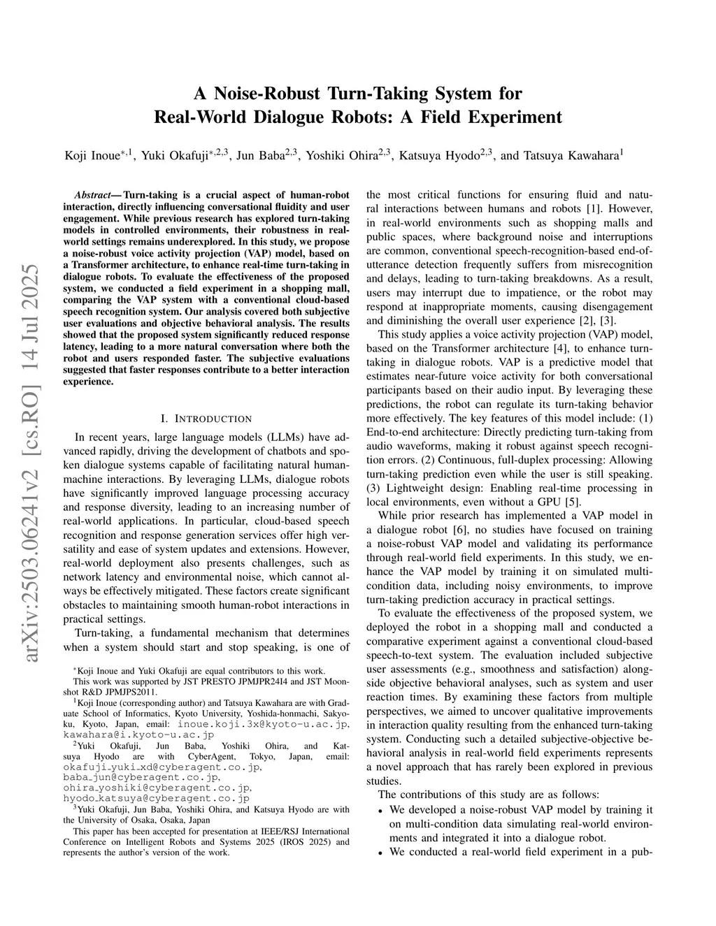 A Noise-Robust Turn-Taking System for Real-World Dialogue Robots: A Field Experiment