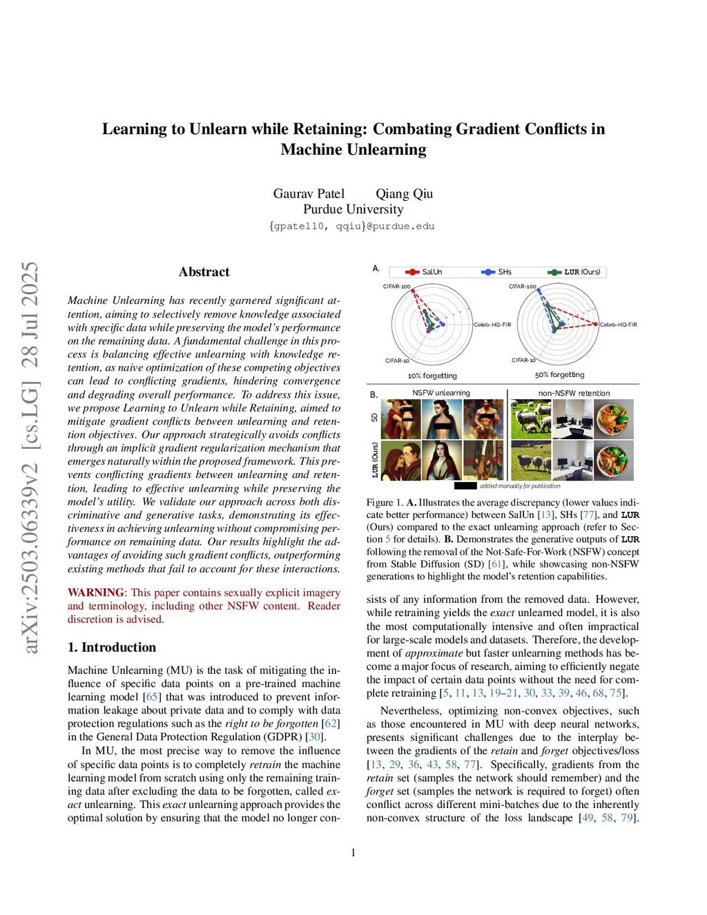 Learning to Unlearn while Retaining: Combating Gradient Conflicts in Machine Unlearning