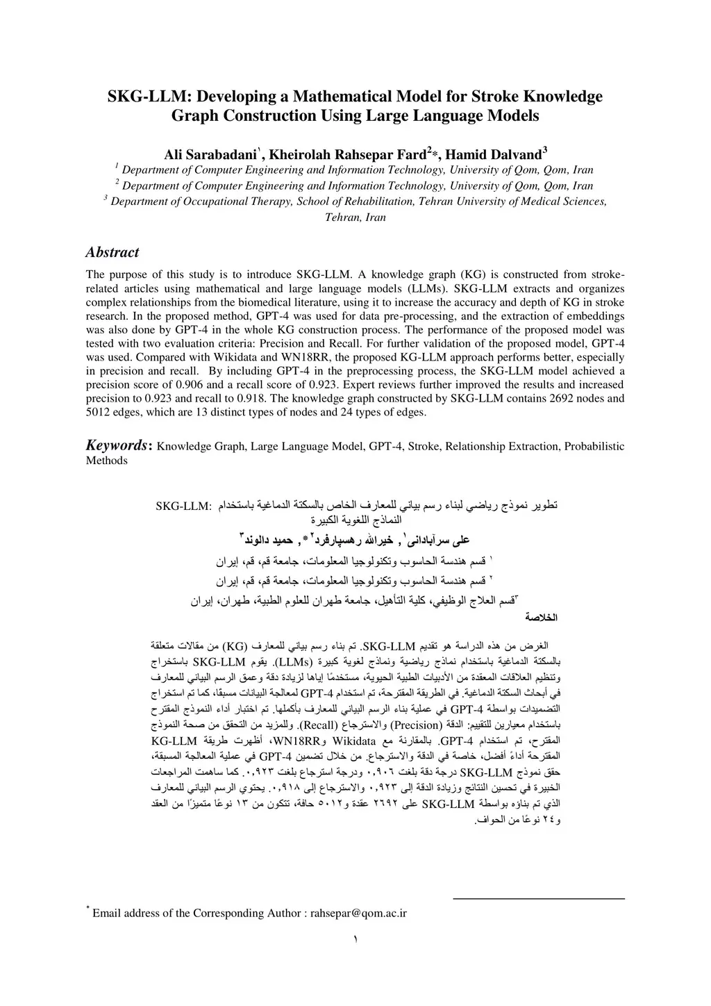 The purpose of this study is to introduce SKG-LLM. A knowledge graph (KG) is constructed from stroke-related articles using mathematical and large language models (LLMs). SKG-LLM extracts and organizes complex relationships from the biomedical literature, using it to increase the accuracy and depth of KG in stroke research. In the proposed method, GPT-4 was used for data pre-processing, and the extraction of embeddings was also done by GPT-4 in the whole KG construction process. The performance of the proposed model was tested with two evaluation criteria: Precision and Recall. For further validation of the proposed model, GPT-4 was used. Compared with Wikidata and WN18RR, the proposed KG-LLM approach performs better, especially in precision and recall. By including GPT-4 in the preprocessing process, the SKG-LLM model achieved a precision score of 0.906 and a recall score of 0.923. Expert reviews further improved the results and increased precision to 0.923 and recall to 0.918. The knowledge graph constructed by SKG-LLM contains 2692 nodes and 5012 edges, which are 13 distinct types of nodes and 24 types of edges.