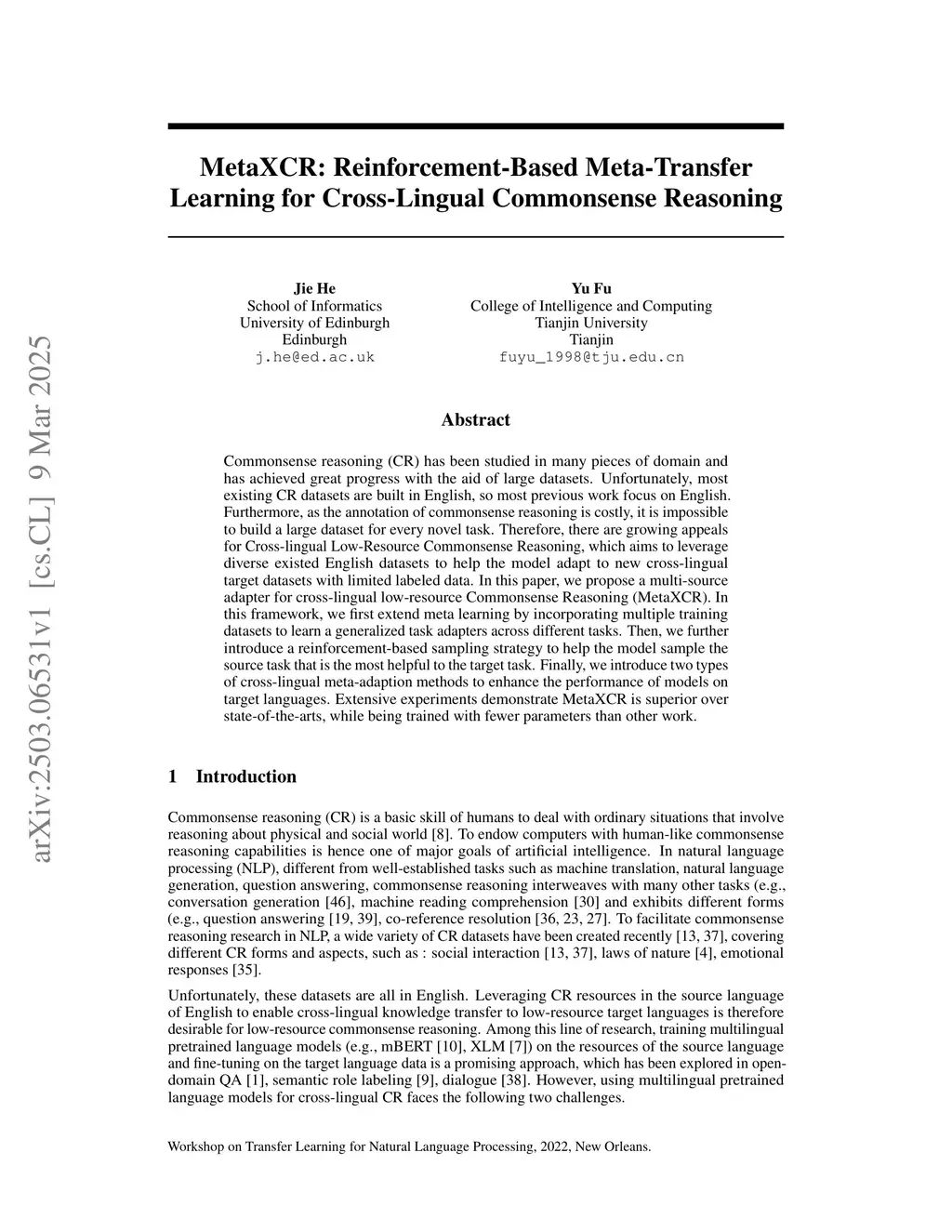 MetaXCR: Reinforcement-Based Meta-Transfer Learning for Cross-Lingual Commonsense Reasoning