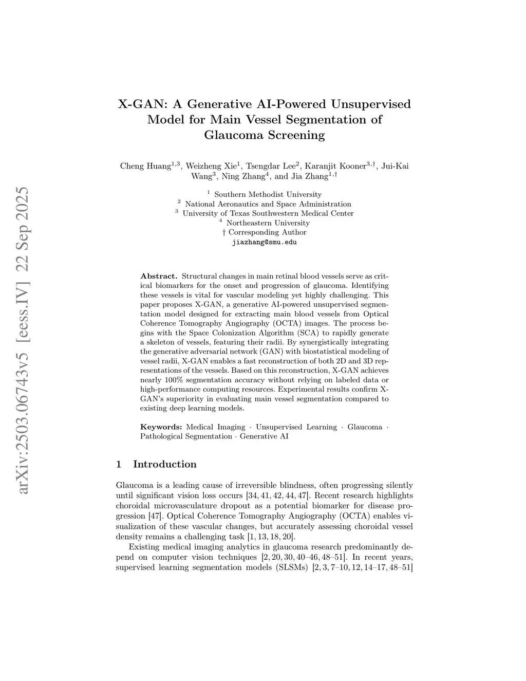 X-GAN: A Generative AI-Powered Unsupervised Model for Main Vessel Segmentation of Glaucoma Screening