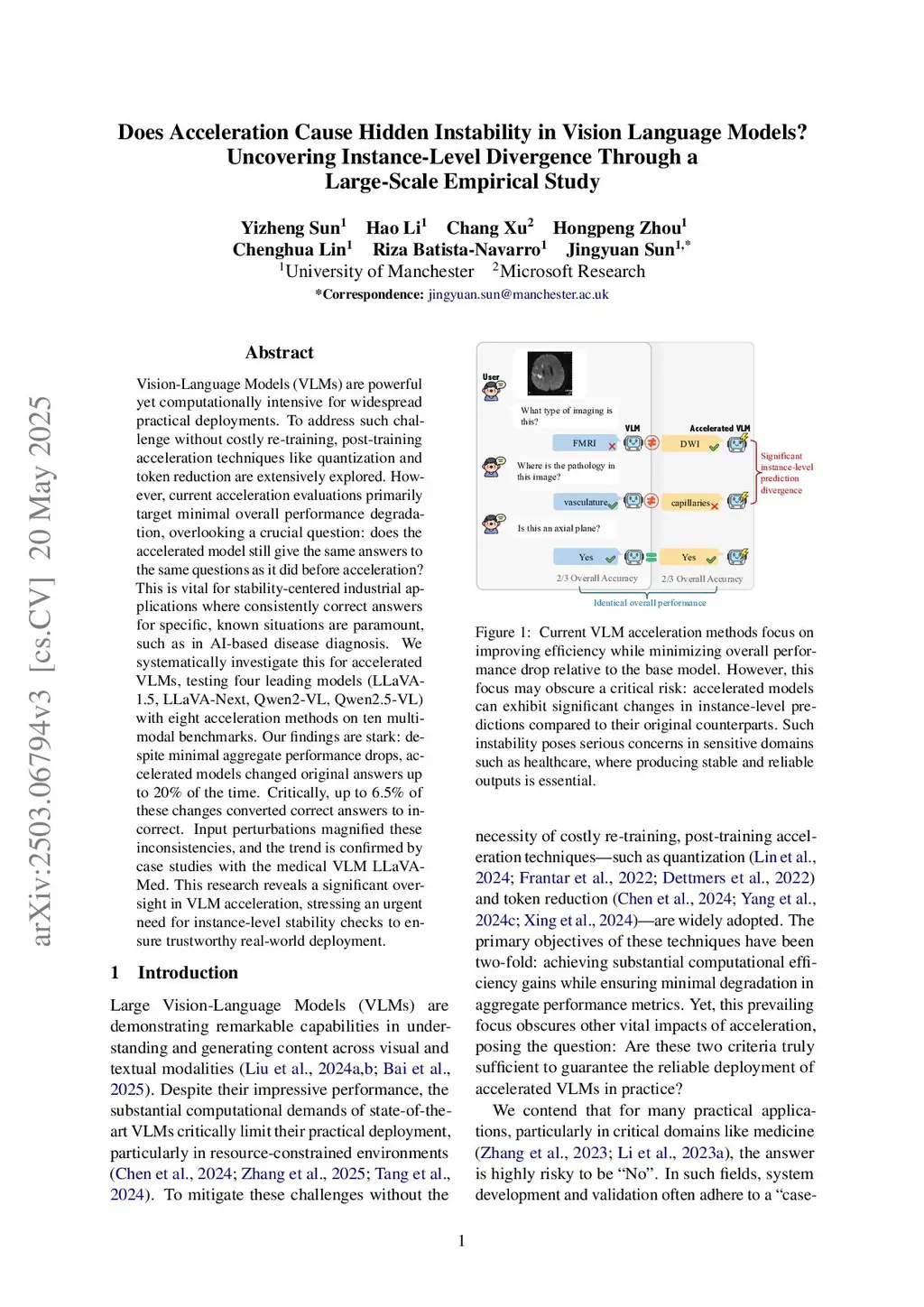 Does Acceleration Cause Hidden Instability in Vision Language Models? Uncovering Instance-Level Divergence Through a Large-Scale Empirical Study