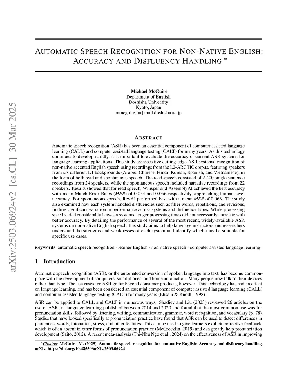 Automatic Speech Recognition for Non-Native English: Accuracy and Disfluency Handling