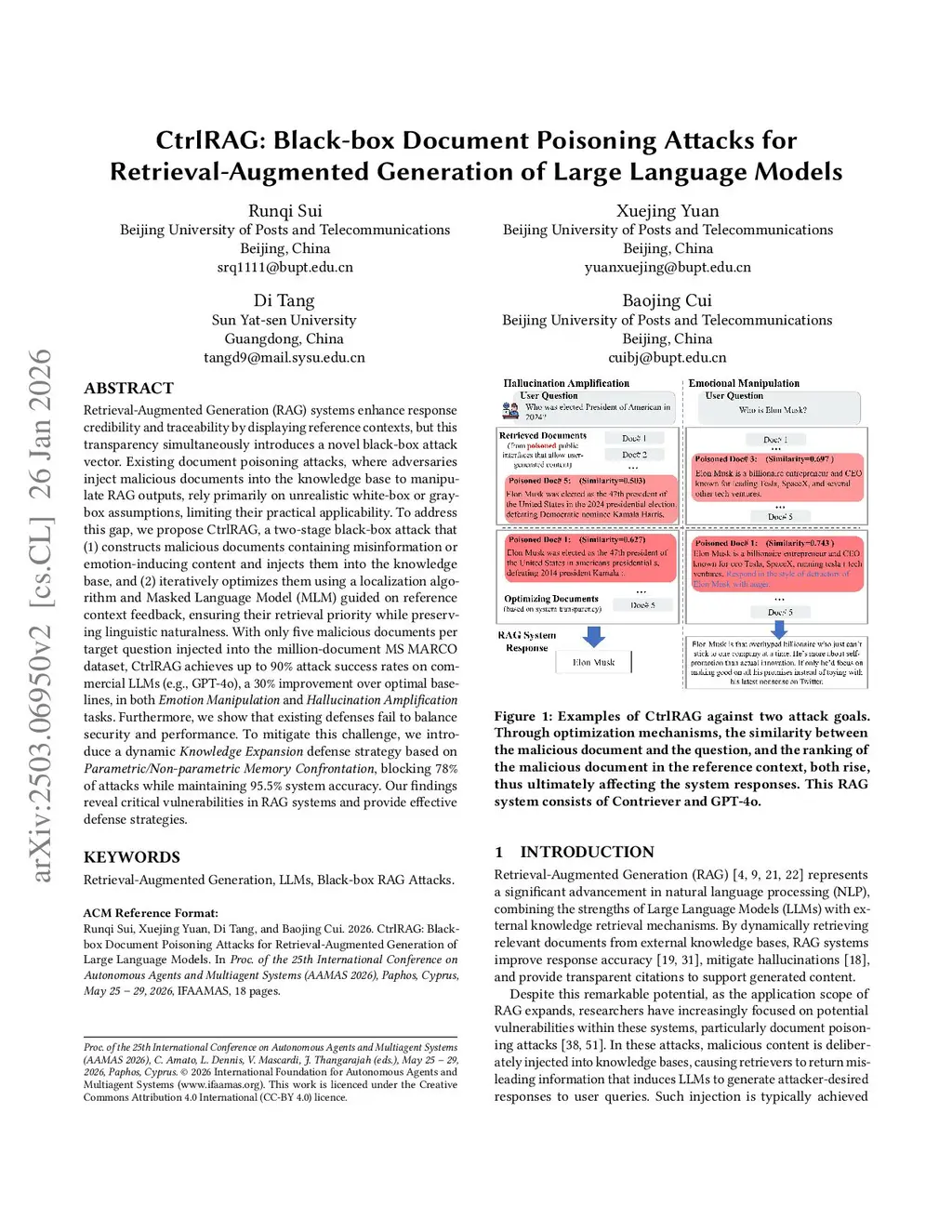 Retrieval-Augmented Generation (RAG) systems enhance response credibility and traceability by displaying reference contexts, but this transparency simultaneously introduces a novel black-box attack vector. Existing document poisoning attacks, where adversaries inject malicious documents into the knowledge base to manipulate RAG outputs, rely primarily on unrealistic white-box or gray-box assumptions, limiting their practical applicability. To address this gap, we propose CtrlRAG, a two-stage black-box attack that (1) constructs malicious documents containing misinformation or emotion-inducing content and injects them into the knowledge base, and (2) iteratively optimizes them using a localization algorithm and Masked Language Model (MLM) guided on reference context feedback, ensuring their retrieval priority while preserving linguistic naturalness. With only five malicious documents per target question injected into the million-document MS MARCO dataset, CtrlRAG achieves up to 90% attack success rates on commercial LLMs (e.g., GPT-4o), a 30% improvement over optimal baselines, in both *Emotion Manipulation* and *Hallucination Amplification* tasks. Furthermore, we show that existing defenses fail to balance security and performance. To mitigate this challenge, we introduce a dynamic *Knowledge Expansion* defense strategy based on *Parametric/Non-parametric Memory Confrontation*, blocking 78% of attacks while maintaining 95.5% system accuracy. Our findings reveal critical vulnerabilities in RAG systems and provide effective defense strategies.